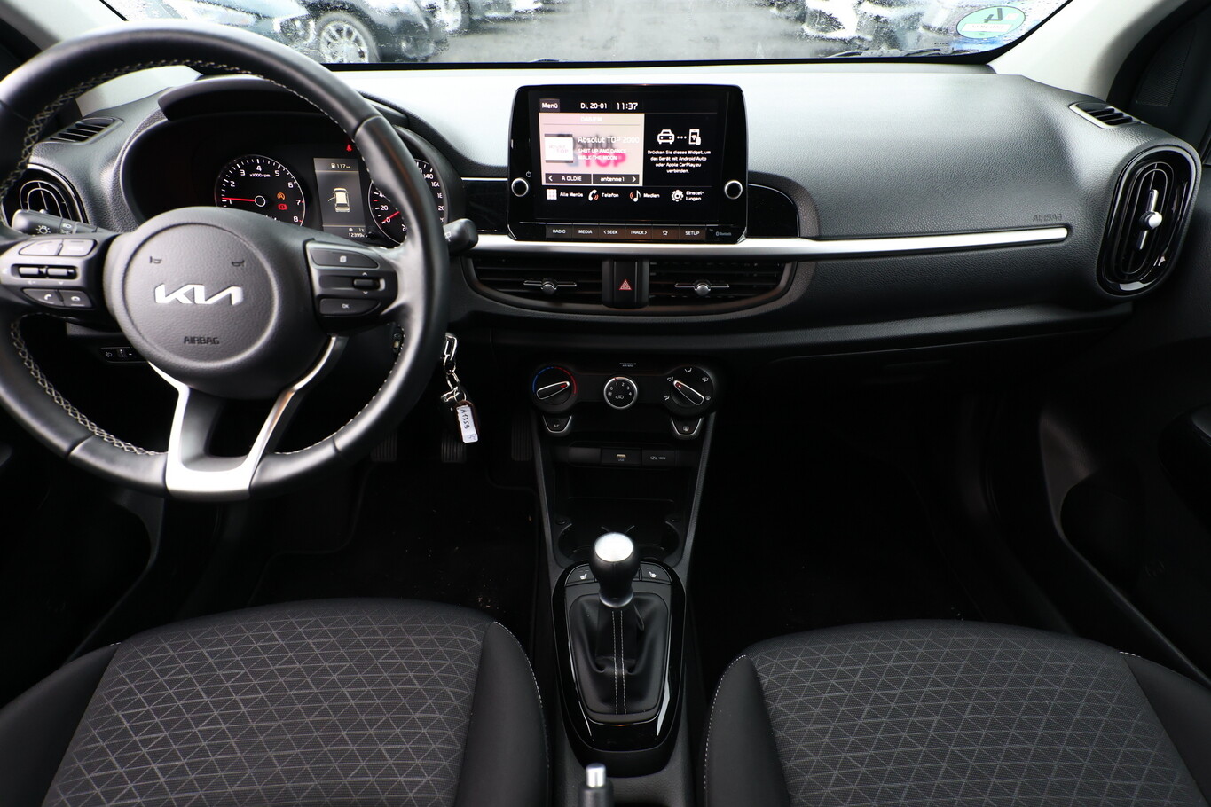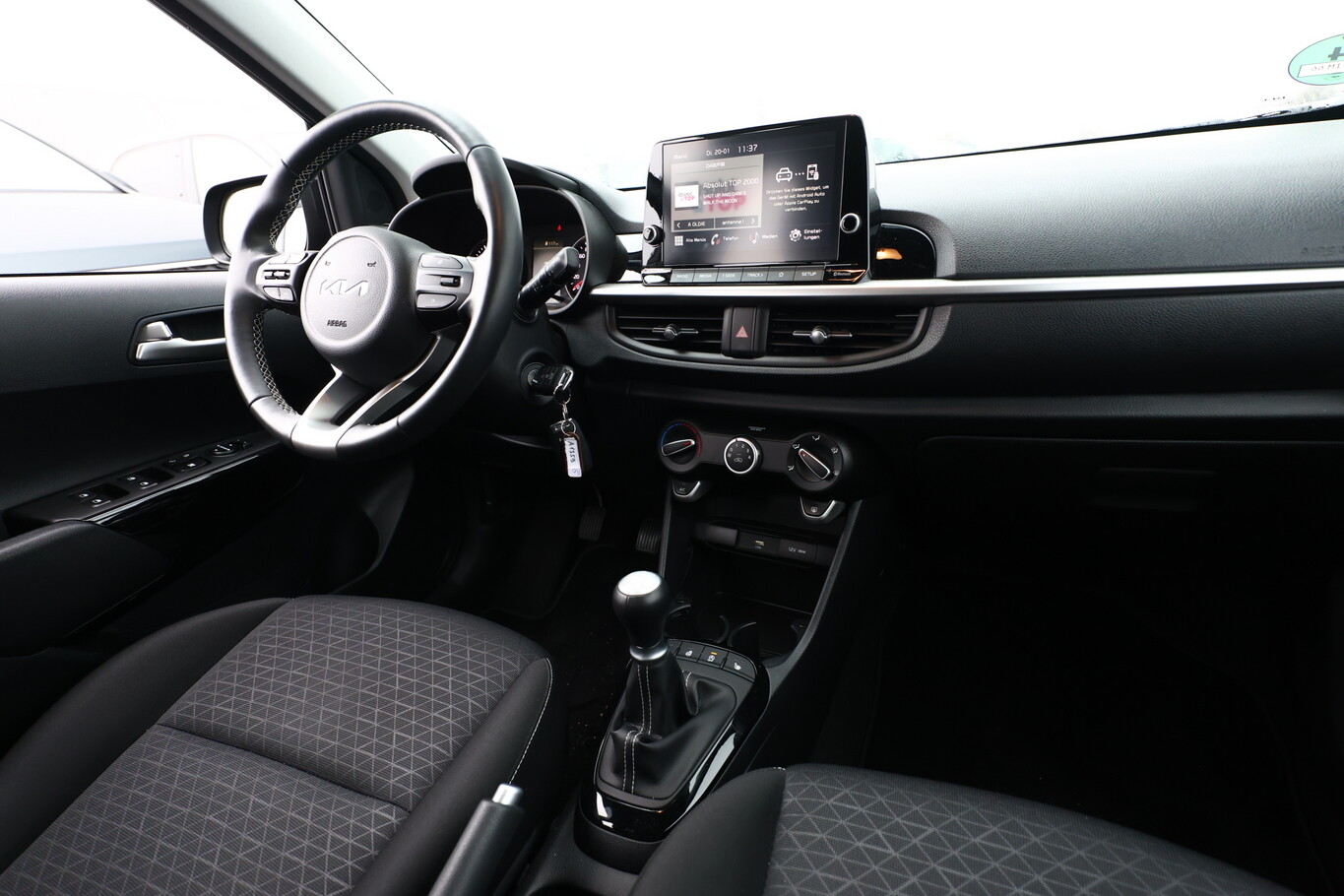 Connectivity-Paket (6 Lautsprecher / Touchscreen-Farbdisplay (8,0 Zoll) / Smartphone Schnittstelle (Apple CarPlay & Android Auto) / Rückfahrkamera), Metallic-Lackierung, Audio-Navigationssytem KIA, Klimaautomatik, Lenkrad mit Multifunktion, LM-Felgen 14 Zoll, Radioempfang digital (DAB), Reifengröße 195/65 R14, Tagfahrlicht LED, Drive-Assist-Paket Advanced (Instrumentenbeleuchtung Supervision / Fahrassistenz-System: Frontkollisionswarnung), Emotion-Paket (Lenkrad heizbar / Schalt-/Wählhebelgriff Leder / Freisprecheinrichtung Bluetooth / Fensterheber elektrisch hinten / Sitzheizung vorn / Lenkrad (Leder) / Außenspiegel elektr. verstell- und heizbar, beide), Elektron. Stabilitäts-Programm (ESP / ESC) (Fahrassistenz-System: Berganfahr-Assistent), 3. Bremsleuchte, Aktives Bremslicht (ESS), Außenspiegel Wagenfarbe, Drehzahlmesser, Gegenlenkunterstützung (Vehicle Stability Management, VSM), Gepäcknetz / Tasche an Vordersitzlehne, Gepäckraumabdeckung / Rollo, Getränkehalter, Gurtstraffer (vorn), Heckscheibe heizbar, Heckscheibenwischer, Karosserie: 5-türig, Kopfstützen hinten verstellbar, Kopfstützen vorn verstellbar, Kühlergrill mit Chromrahmen, Laderaumabdeckung, Lenksäule (Lenkrad) höhenverstellbar, Modellpflege, Motor 1,2 Ltr. - 62 kW KAT, Reifen-Reparaturset, Schadstoffarm nach Abgasnorm Euro 6d, Schaltpunktanzeige, Schwellerabdeckung / -verkleidung, Sitz vorn links höhenverstellbar, Sitzbezug / Polsterung: Stoff, Sonnenblenden mit Spiegel (beleuchtet), Steckdose (12V-Anschluß) in Mittelkonsole, Stoßfänger Wagenfarbe, Türgriffe außen Wagenfarbe, Anti-Blockier-System (ABS), Bremsassistent, Wegfahrsperre, Getriebe 5-Gang, Airbag Fahrer-/Beifahrerseite, Fensterheber elektrisch vorn, Isofix-Aufnahmen für Kindersitz, Rücksitzlehne geteilt/klappbar, Seitenairbag, Verglasung hinten abgedunkelt (Privacy Glass), Zentralverriegelung mit Fernbedienung, Bordcomputer, Wärmeschutzverglasung, Servolenkung, Einschaltautomatik für Fahrlicht, Tagfahrlicht, Start/Stop-Anlage (ISG)