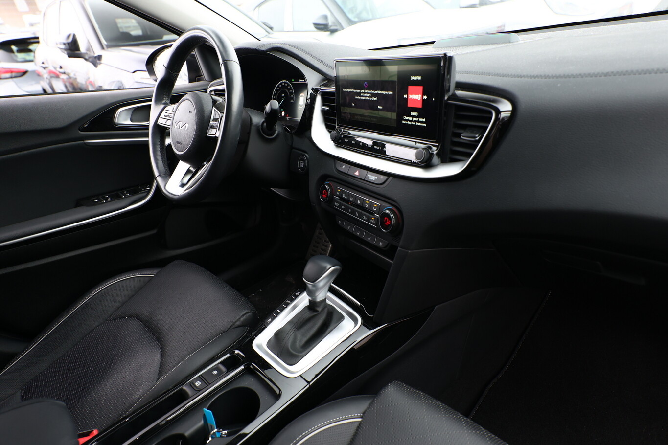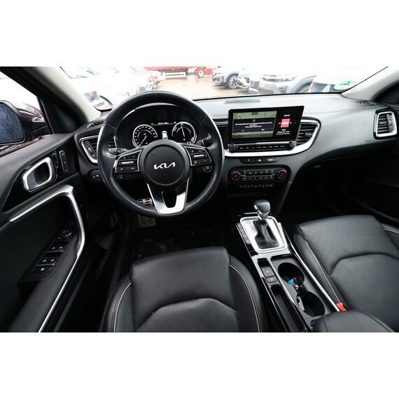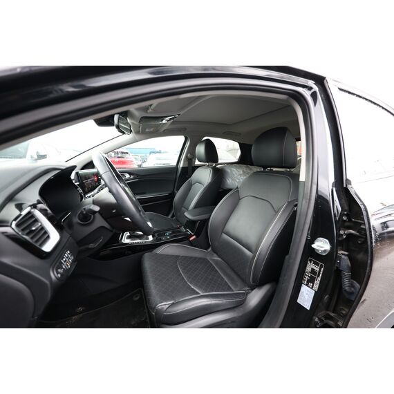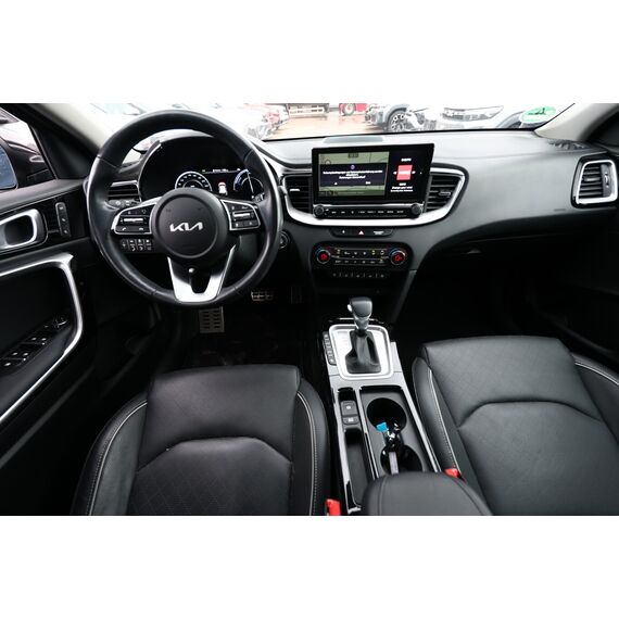 Panoramadach / Ausstelldach (Glas) (Außenspiegelgehäuse Klavierlack), Metallic-Lackierung, Einparkhilfe vorn und hinten, LM-Felgen 18 Zoll, Reifen 235/45 R18, Reifengröße 235/45 R18, Sitz vorn links elektr. verstellbar, Klimaautomatik 2-Zonen (Sensor Scheibenbeschlagerkennung), Fahrassistenz-System: Spurwechselassistent (Außenspiegel mit BLIS (Blind Spot Informations System)), 6 Lautsprecher, Akustischer Umfeldschutz (virtueller Motorsound), Chromeinfassung Seitenfenster, DAB-Tuner (Radioempfang digital), Dachantenne im Haifischflossen-Design, Dachhimmel grau, Dachspoiler, Einstiegsleisten (Aluminium), Elektromotor 59 kW (Hybridantrieb), Gepäcknetz / Tasche an Vordersitzlehne, Gepäcksicherungsnetz, Getränkehalter, Heckscheibe heizbar, Heckscheibenwischer, Heckspoiler mit integrierter Bremsleuchte, Hybrid 104 kW (Motor 1,6 Ltr. - 77 kW), Induktionsladeschale für Smartphone, Innenspiegel mit Abblendautomatik, Karosserie: 5-türig, Kombiinstrument digital, Kopfstützen hinten verstellbar, Kopfstützen vorn verstellbar, Kühlergrill Klavierlack, Laderaumboden variabel, Lendenwirbelstütze Sitz vorn links und rechts, elektr. verstellbar, Lenkrad heizbar, Luftausströmer im Fond mitte, Mittelarmlehne hinten mit Getränkehalter, Otto-Partikelfilter (OPF), Parkbremse elektrisch, Pedale Aluminium, Radstand 2650 mm, Reifen-Reparaturset, Schadstoffarm nach Abgasnorm Euro 6d, Schalt-/Wählhebelgriff Leder, Scheibenwaschdüsen heizbar, Sitz vorn links höhenverstellbar, Sitz vorn rechts mech. höhenverstellbar, Sitzbelüftung vorn, Sonnenblenden mit Spiegel (beleuchtet), Sound-System JBL Premium, Steckdose (12V-Anschluß) im Koffer-/Laderaum, Steckdose (12V-Anschluß) in Mittelkonsole, Stoßfänger Wagenfarbe, Türgriffe außen Wagenfarbe, Türgriffe innen Chrom-Optik, Warnanlage für Sicherheitsgurte hinten, Warnanlage für Sicherheitsgurte, Fahrer-/Beifahrerseite, Audio-Navigationssystem KIA (10,25"), Freisprecheinrichtung Bluetooth, Smartphone Schnittstelle (Apple CarPlay & Android Auto), USB-Anschluss + AUX-IN-Anschluss, USB-Schnellladeanschluß Mittelkonsole, Anti-Blockier-System (ABS), Bremsassistent, Fahrassistenz-System: Frontkollisionswarnung mit Fußgänger- und Fahrraderkennung und Abbiegefunktion, Antriebs-Schlupfregelung (TCS), Antriebsart: Frontantrieb, Elektron. Stabilitäts-Programm (ESP / ESC), Wegfahrsperre, Getriebe 6-Gang - Doppelkupplungsgetriebe DCT, Airbag Fahrer-/Beifahrerseite, Fensterheber elektr. mit Einklemmschutz hinten, Fensterheber elektr. mit Einklemmschutz vorn, Isofix-Aufnahmen für Kindersitz, Kopf-Airbag-System, Mittelarmlehne vorn verschiebbar, Rücksitz klappbar (40:20:40), Schließ-/Startsystem Smart-Key, Seitenairbag, Sitzbezug / Polsterung: Leder / Kunstleder, Sitzheizung hinten, Sitzheizung vorn, Verglasung hinten abgedunkelt (Privacy Glass), Zentralverriegelung mit Fernbedienung, Bordcomputer, Heckklappenöffnung elektr., Wärmeschutzverglasung, Fahrassistenz-System: Berganfahr-Assistent, Fahrassistenz-System: Stauassistent, Fahrassistenz-System: Verkehrszeichenerkennung, Geschwindigkeits-Regelanlage (Tempomat), Rückfahrkamera, Lenkrad (Leder), Lenkrad mit Multifunktion, Servolenkung elektronisch gesteuert, Abbiegelicht, Außenspiegel elektr. anklappbar, Außenspiegel elektr. verstellbar, beide, Außenspiegel heizbar, Bi-LED-Scheinwerfer, Blinkleuchte in Außenspiegel integriert, Einschaltautomatik für Fahrlicht, Fahrassistenz-System: Fernlichtassistent, Heckleuchten LED, Nebelscheinwerfer, Scheibenwischer mit Regensensor, Tagfahrlicht LED, Tagfahrlicht LED hinten, Fahrassistenz-System: aktiver Spurhalteassistent (LKAS, Lane Keep Assist System), Fahrassistenz-System: Müdigkeitserkennungs-Sensor (Driver Attention Warning, DAW), Fahrassistenz-System: Querverkehrs-Assistent (Rear Cross Traffic Collision Warning, RCCW), Reifendruck-Kontrollsystem, Diebstahl-Warnanlage