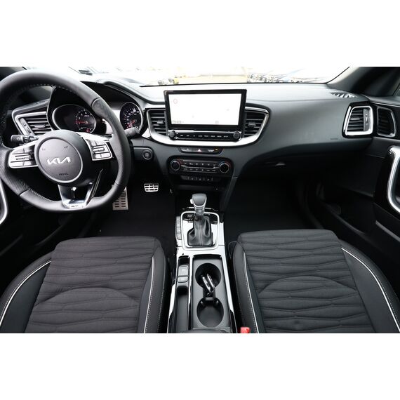 Anzeigeinstrumente Supervision mit LCD Display 4,2 Zoll, Auto-Hold-Funktion, Beifahrerairbag deaktivierbar, Dachreling, Fahrassistenz-System: Spurhalteassistent, Freisprecheinrichtung Bluetooth, Geschwindigkeitsbegrenzer, Handschuhfach beleuchtet, Heckleuchten LED in Wabenform mit sequentiellen Blinkern, Lendenwirbelstütze Sitz vorn links und rechts, Lenkrad (Lenksäule) höhen-/längsverstellbar, LM-Felgen 18 Zoll, Mittelarmlehne hinten, Reifen 235/45 R18, Rücksitzlehne geteilt klappbar (60:40), Seitenairbag vorn, Sitzbezug / Polsterung: Stoff/Kunstleder, Sitzheizung hinten, Sportsitze vorn, Zentralverriegelung, Audio-Navigationssystem KIA (10,25") (Mobile Online Dienste UVO Connect / Kia Connect), Klimaautomatik 2-Zonen (Sensor Scheibenbeschlagerkennung), Aktives Bremslicht (ESS), Brillenfach in Dachhimmel / Dachkonsole integriert, Dachhimmel schwarz, Fahrassistenz-System: Insassenalarm (Rear Occopant Alert, ROA), Induktionsladeschale für Smartphone, Innenspiegel mit Abblendautomatik, Karosserie: 5-türig, Laderaumboden variabel, Lenkrad heizbar, Luftausströmer im Fond mitte, Motor 1,6 Ltr. - 132 kW T-GDI KAT (1598 ccm), Otto-Partikelfilter (OPF), Parkbremse elektrisch, Pedale Aluminium, Radioempfang digital (DAB+), Sitz vorn links höhenverstellbar, Sitz vorn rechts mech. höhenverstellbar, Steckdose (12V-Anschluß) im Koffer-/Laderaum, Steckdose (12V-Anschluß) in Mittelkonsole, Warnanlage für Sicherheitsgurte hinten, Warnanlage für Sicherheitsgurte, Fahrer-/Beifahrerseite, Smartphone Schnittstelle (Apple CarPlay & Android Auto), USB-Schnellladeanschluß Mittelkonsole, Anti-Blockier-System (ABS), Bremsassistent, Fahrassistenz-System: Frontkollisionswarnung mit Fußgänger- und Fahrraderkennung und Abbiegefunktion, Antriebs-Schlupfregelung (TCS), Antriebsart: Frontantrieb, Elektron. Stabilitäts-Programm (ESP / ESC), Wegfahrsperre, Getriebe 7-Gang - Doppelkupplungsgetriebe DCT, Airbag Fahrer-/Beifahrerseite, Fensterheber elektrisch vorn + hinten, Isofix-Aufnahmen für Kindersitz, Kopf-Airbag-System, Mittelarmlehne vorn verschiebbar, Schließ-/Startsystem Smart-Key, Sitzheizung vorn, Verglasung hinten abgedunkelt (Privacy Glass), Bordcomputer, Fahrassistenz-System: Fahrprofilauswahl (Drive Mode), Heckklappe elektr. betätigt sensorgesteuert, Adaptive Geschwindigkeits-Regelanlage mit Stop&Go-Funktion, Fahrassistenz-System: Berganfahr-Assistent, Fahrassistenz-System: Verkehrszeichenerkennung, Rückfahrkamera, Lenkrad (Leder), Lenkrad mit Multifunktion, Servolenkung elektronisch gesteuert, Außenspiegel elektr. anklappbar, Außenspiegel elektr. verstellbar, beide, Außenspiegel heizbar, Bi-LED-Scheinwerfer, Einschaltautomatik für Fahrlicht, Fahrassistenz-System: Fernlichtassistent, Nebelscheinwerfer LED, Scheibenwischer mit Regensensor, Tagfahrlicht LED, Einparkhilfe hinten, Einparkhilfe vorn, Fahrassistenz-System: Müdigkeitserkennungs-Sensor (Driver Attention Warning, DAW), Fahrassistenz-System: Spurfolgeassistent (Lane Following Assist, LFA), Reifendruck-Kontrollsystem, Start/Stop-Anlage (ISG)