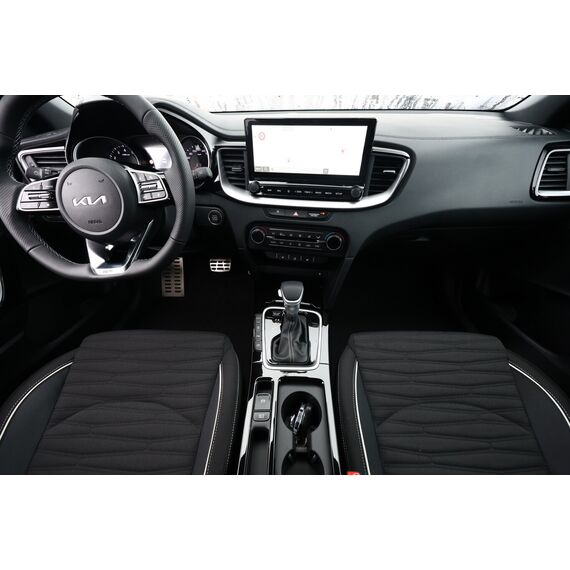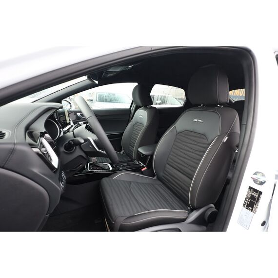 Anzeigeinstrumente Supervision mit LCD Display 4,2 Zoll, Auto-Hold-Funktion, Beifahrerairbag deaktivierbar, Dachreling, Fahrassistenz-System: Spurhalteassistent, Freisprecheinrichtung Bluetooth, Geschwindigkeitsbegrenzer, Handschuhfach beleuchtet, Heckleuchten LED in Wabenform mit sequentiellen Blinkern, Lendenwirbelstütze Sitz vorn links und rechts, Lenkrad (Lenksäule) höhen-/längsverstellbar, LM-Felgen 18 Zoll, Mittelarmlehne hinten, Reifen 235/45 R18, Rücksitzlehne geteilt klappbar (60:40), Seitenairbag vorn, Sitzbezug / Polsterung: Stoff/Kunstleder, Sitzheizung hinten, Sportsitze vorn, Zentralverriegelung, Audio-Navigationssystem KIA (10,25") (Mobile Online Dienste UVO Connect / Kia Connect), Klimaautomatik 2-Zonen (Sensor Scheibenbeschlagerkennung), Aktives Bremslicht (ESS), Brillenfach in Dachhimmel / Dachkonsole integriert, Dachhimmel schwarz, Fahrassistenz-System: Insassenalarm (Rear Occopant Alert, ROA), Induktionsladeschale für Smartphone, Innenspiegel mit Abblendautomatik, Karosserie: 5-türig, Laderaumboden variabel, Lenkrad heizbar, Luftausströmer im Fond mitte, Motor 1,6 Ltr. - 110 kW T-GDI KAT, Otto-Partikelfilter (OPF), Parkbremse elektrisch, Pedale Aluminium, Radioempfang digital (DAB+), Sitz vorn links höhenverstellbar, Sitz vorn rechts mech. höhenverstellbar, Steckdose (12V-Anschluß) im Koffer-/Laderaum, Steckdose (12V-Anschluß) in Mittelkonsole, Warnanlage für Sicherheitsgurte hinten, Warnanlage für Sicherheitsgurte, Fahrer-/Beifahrerseite, Smartphone Schnittstelle (Apple CarPlay & Android Auto), USB-Schnellladeanschluß Mittelkonsole, Anti-Blockier-System (ABS), Bremsassistent, Fahrassistenz-System: Frontkollisionswarnung mit Fußgänger- und Fahrraderkennung und Abbiegefunktion, Antriebs-Schlupfregelung (TCS), Antriebsart: Frontantrieb, Elektron. Stabilitäts-Programm (ESP / ESC), Wegfahrsperre, Getriebe 7-Gang - Doppelkupplungsgetriebe DCT, Airbag Fahrer-/Beifahrerseite, Fensterheber elektrisch vorn + hinten, Isofix-Aufnahmen für Kindersitz, Kopf-Airbag-System, Mittelarmlehne vorn verschiebbar, Schließ-/Startsystem Smart-Key, Sitzheizung vorn, Verglasung hinten abgedunkelt (Privacy Glass), Bordcomputer, Fahrassistenz-System: Fahrprofilauswahl (Drive Mode), Heckklappe elektr. betätigt sensorgesteuert, Adaptive Geschwindigkeits-Regelanlage mit Stop&Go-Funktion, Fahrassistenz-System: Berganfahr-Assistent, Fahrassistenz-System: Verkehrszeichenerkennung, Rückfahrkamera, Lenkrad (Leder), Lenkrad mit Multifunktion, Servolenkung elektronisch gesteuert, Außenspiegel elektr. anklappbar, Außenspiegel elektr. verstellbar, beide, Außenspiegel heizbar, Bi-LED-Scheinwerfer, Einschaltautomatik für Fahrlicht, Fahrassistenz-System: Fernlichtassistent, Nebelscheinwerfer LED, Scheibenwischer mit Regensensor, Tagfahrlicht LED, Einparkhilfe hinten, Einparkhilfe vorn, Fahrassistenz-System: Müdigkeitserkennungs-Sensor (Driver Attention Warning, DAW), Fahrassistenz-System: Spurfolgeassistent (Lane Following Assist, LFA), Reifendruck-Kontrollsystem, Start/Stop-Anlage (ISG)