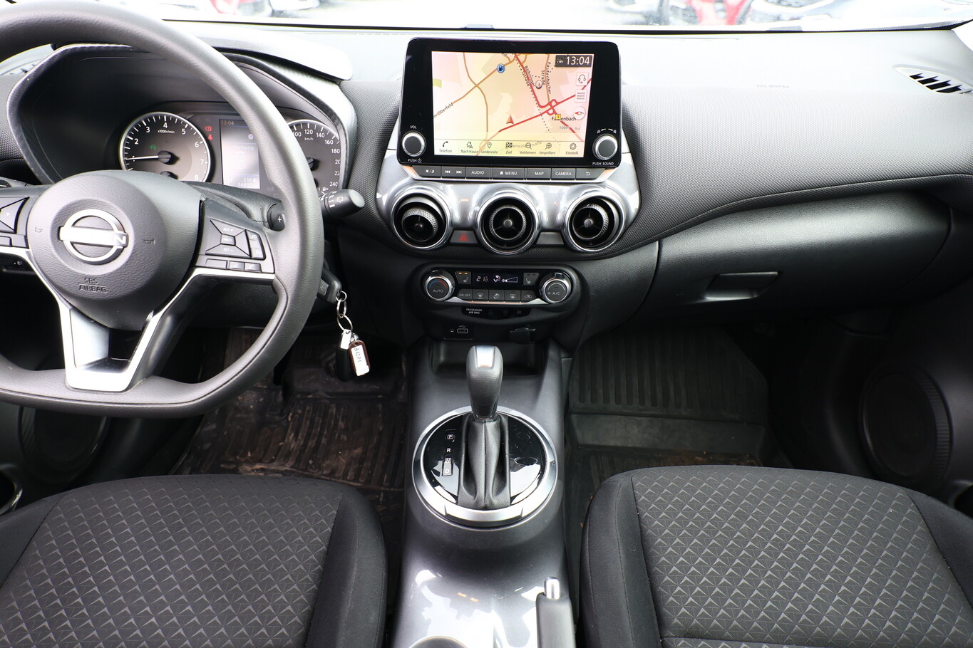 Perleffekt-Lackierung, Klimaautomatik, LM-Felgen 7J x 17 Zoll, Nissan Connect Navigationssystem, Reifen 215/60 R17, Sitzheizung vorn, Ausstattungs-Paket: Nissan Connect (Farbdisplay (8 Zoll) / Infotainment mit Touchscreen), Audiosystem: Radio (4 Lautsprecher / Radioempfang digital (DAB) / AUX-IN-Anschluss (AUX-IN) / Bluetooth-Schnittstelle / USB-Schnittstelle), Anti-Blockier-System (ABS) (Elektr. Bremskraftverteilung (EBD)), Lenkrad mit Multifunktion (Audio-/Bordcomputerbedienung am Lenkrad), Außenspiegel elektr. verstellbar (Blinkleuchte in Außenspiegel integriert), Fahrassistenz-System: Autonomer Notbrems-Assistent (Fahrassistenz-System: Fußgängererkennung), Abdeckkappen Außenspiegel Schwarz, Außentemperaturanzeige, Dachantenne, Dachspoiler, Gepäckraumabdeckung / Rollo, Geschwindigkeits-Begrenzeranlage, Karosserie: 5-türig, Kopfstützen vorn und hinten verstellbar, Lenksäule (Lenkrad) höhenverstellbar, Leseleuchte vorn, Motor 1,0 Ltr. - 84 kW 12V KAT, Radstand 2636 mm, Reifen-Reparaturset, Schadstoffarm nach Abgasnorm Euro 6d, Sitz vorn links höhenverstellbar, Sitzbezug / Polsterung: Stoff, Sonnenblenden mit Spiegel, Steckdose (12V-Anschluß), Türgriffe innen verchromt, Sprachbediensystem Spracherkennung, Bremsassistent (Nissan Brake-Assist), Antriebsart: Frontantrieb, Elektron. Stabilitäts-Programm (ESP), Fahrassistenz-System: Aktive Fahrkomfortregelung (Fahrwerksdämpfung), Getriebe 7-Gang - Doppelkupplungsgetriebe DCT, Airbag Beifahrerseite abschaltbar, Airbag Fahrer-/Beifahrerseite und Seitenairbag vorn, Fensterheber elektrisch vorn + hinten, Isofix-Aufnahmen für Kindersitz, Kopf-Airbag-System, Rücksitz geteilt/klappbar, Sportsitze vorn (Monoform-Design), Fahrer-Informations-System (FIS) mit Farbdisplay, Fahrassistenz-System: Berganfahr-Assistent, Fahrassistenz-System: Verkehrszeichenerkennung, Geschwindigkeits-Regelanlage (Tempomat), Rückfahrkamera, Fahrassistenz-System: Sicherheitssystem ERA GLONASS mit automatischem Notruf, Lenkrad mit Schaltwippen/-tasten, Fahrassistenz-System: Fernlichtassistent, Scheinwerfer LED, Fahrassistenz-System: aktiver Spurhalteassistent, mit korrigierendem Bremseingriff, Fahrassistenz-System: Kurvenbremskontrolle (Aktive Spurkontrolle), Reifendruck-Kontrollsystem, Start/Stop-Anlage