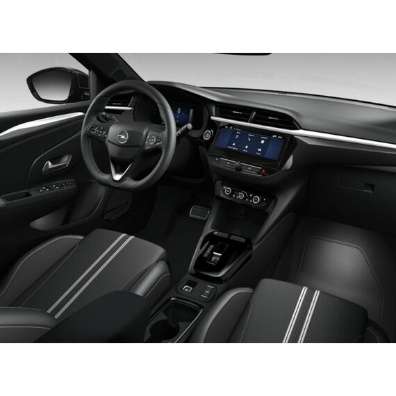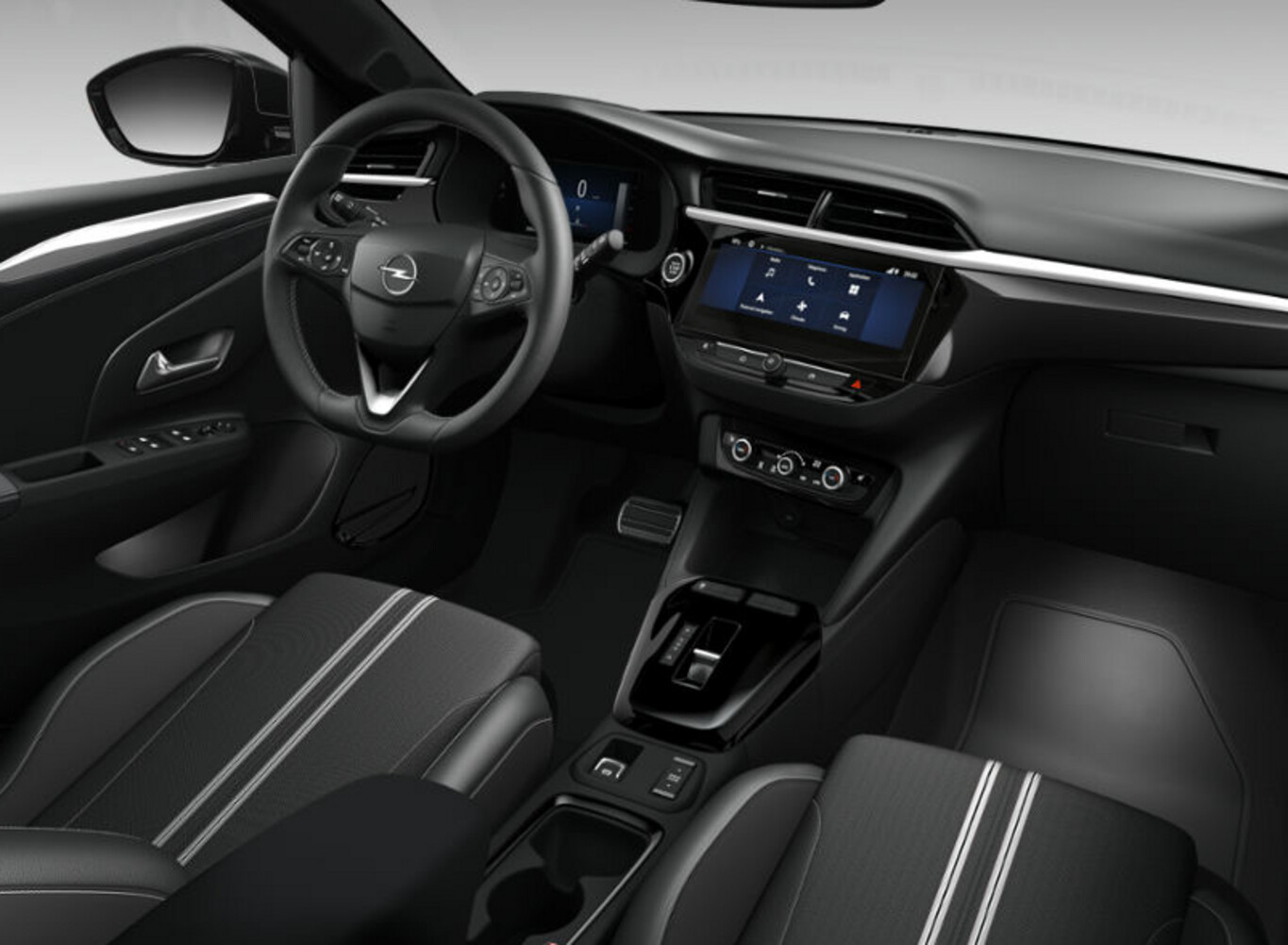 Audio-Navigationssystem Multimedia Navi Pro (10" Display) (DAB-Tuner (Radioempfang digital) / Opel Connect / Smartphone Schnittstelle (Apple CarPlay & Android Auto)), Fahrassistenz-Paket: Active Drive Assist plus (Fahrassistenz-System: Verkehrszeichenerkennung, erweitert (Geschwindigkeits-Regel-/Begrenzeranlage) / Geschwindigkeits-Regelanlage (Tempomat) mit Abstandsregelung und Stopp-Funktion / Fahrassistenz-System: aktiver Spurhalteassistent (Lenkunterstützung) / Fahrassistenz-System: Autonomer Notbrems-Assistent mit Frontkollisionswarnung und Fußgänger- und Fahrraderkennung), Rückfahrkamera mit 180° Umgebungsansicht (Parkpilotsystem hinten), Klimaautomatik, Wärmeschutzverglasung hinten abgedunkelt (Solar-Protect), 12V-Steckdose vorn, Ambiente-Beleuchtung LED, Beifahrerairbag deaktivierbar, Bluetooth-Schnittstelle, Fahrassistenz-System: Fernlichtassistent, Fahrzeugschlüssel (2) beide klappbar, Feststellbremse elektrisch, Gepäckraumabdeckung, Induktionsladeschale für Smartphone (Wireless Charging), Intelligente Geschwindigkeits-Begrenzeranlage, Kombiinstrument digital (7 Zoll), Lenkrad (Leder) mit Multifunktion und Schaltfunktion, Lenkrad heizbar, LM-Felgen 16 Zoll (schwarz), Notrufsystem eCall, Reifen 195/55 R16, Reifendruck-Kontrollsystem, Schadstoffarm nach Abgasnorm Euro 6e (EU6 EA), Scheinwerfer Eco-LED, Sitz vorn links höhenverstellbar, Sitz vorn links verstellbar (6-fach), Sitz vorn rechts verstellbar (6-fach), Sitzheizung vorn, Sonnenblenden mit Spiegel, Start-Stop-Anlage, Tagfahrlicht LED, USB-Schnittstelle vorn (Typ C), Zentralverriegelung / Startanlage Keyless System, Zentralverriegelung mit Fernbedienung, Sicht-Paket (Innenspiegel mit Abblendautomatik / Einschaltautomatik für Fahrlicht / Scheibenwischer mit Regensensor), Außenspiegel elektr. verstell- und heizbar, elektr. anklappbar (Außenspiegel elektr. verstell- und heizbar), Parkpilotsystem vorn und hinten (Parkpilotsystem hinten), 6 Lautsprecher, B-Säulen schwarz Hochglanz (außen), Dach Kontrast-Lackierung, Dachhimmel schwarz, Karosserie: 5-türig, Lenksäule (Lenkrad) verstellbar, Motor 1,2 Ltr. - 74 kW, Otto-Partikelfilter (OPF), Pedale Aluminium, Sitzbezug / Polsterung: Stoff, Stoßfänger Sport-Design, Türgriffe außen Wagenfarbe, Türgriffe innen verchromt, Warnanlage für Sicherheitsgurt, Beifahrerseite, Warnanlage für Sicherheitsgurt, Fahrerseite, Warnanlage für Sicherheitsgurte hinten, Anti-Blockier-System (ABS), Elektron. Stabilitäts-Programm Plus (ESP), Getriebe Automatik - mit Start-/Stop (8-Stufen), Airbag Fahrer-/Beifahrerseite, Fensterheber elektrisch vorn + hinten, Isofix-Aufnahmen für Kindersitz an Beifahrersitz, Isofix-Aufnahmen für Kindersitz an Rücksitz, Kopf-Airbag-System, Mittelarmlehne vorn mit Ablagefach, Rücksitzbank geteilt/klappbar (60:40), Seitenairbag vorn, Sportsitze vorn, Bordcomputer, Fahrassistenz-System: Berganfahr-Assistent (HSA, Hill Start Assist), Fahrassistenz-System: Totwinkel-Assistent, Heckleuchten LED, Fahrassistenz-System: Müdigkeitserkennungs-Sensor