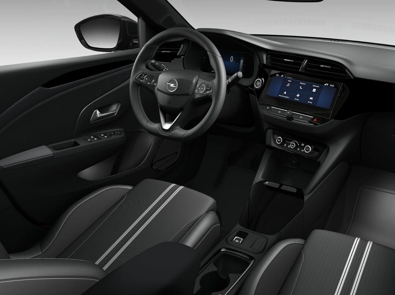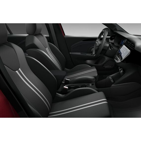 Infotainment-Paket (Ambiente-Beleuchtung LED / DAB-Tuner (Radioempfang digital) / Feststellbremse elektrisch / Induktionsladeschale für Smartphone (Wireless Charging) / Opel Connect / Technologie-Paket Park & Go Plus / Audio-Navigationssystem Multimedia Navi Pro (10" Display) / Smartphone Schnittstelle (Apple CarPlay & Android Auto) / USB-Schnittstelle hinten (2-fach) / Klimaautomatik / Mittelarmlehne vorn mit Ablagefach / Schließ-/Startsystem Keyless Open / Wärmeschutzverglasung hinten abgedunkelt (Solar-Protect) / Rückfahrkamera mit 180° Umgebungsansicht / Außenspiegel elektr. verstell- und heizbar / Außenspiegel elektr. verstell- und heizbar, elektr. anklappbar / Fahrassistenz-System: Totwinkel-Assistent / Parkpilotsystem hinten / Parkpilotsystem vorn und hinten), Bluetooth-Schnittstelle, Fahrassistenz-System: Autonomer Notbrems-Assistent, Fahrmodusschalter, Kombiinstrument digital (7 Zoll), LM-Felgen 16 Zoll (Tornado Gloss Black), Reifen 195/55 R16, Sitz vorn links verstellbar (6-fach), Sitz vorn rechts verstellbar (4-fach), Start-Stop-Anlage, Tagfahrlicht LED, Sicht-Paket (Innenspiegel mit Abblendautomatik / Einschaltautomatik für Fahrlicht / Scheibenwischer mit Regensensor), Geschwindigkeits-Regelanlage (Tempomat) inkl. Geschwindigkeits-Begrenzeranlage (Geschwindigkeits-Regelanlage (Tempomat)), Scheinwerfer LED (Blinkleuchten LED in Außenspiegel integriert / Leuchtweitenregelung / Fahrassistenz-System: Fernlichtassistent / Tagfahrlicht LED), 6 Lautsprecher, B-Säulen schwarz Hochglanz (außen), Dach Kontrast-Lackierung, Dachhimmel schwarz, Karosserie: 5-türig, Motor 1,2 Ltr. - 74 kW, Otto-Partikelfilter (OPF), Reifen-Reparaturkit, Sitzbezug / Polsterung: Stoff, Stoßfänger Sport-Design, Türgriffe außen Wagenfarbe, Türgriffe innen verchromt, Warnanlage für Sicherheitsgurt, Beifahrerseite, Warnanlage für Sicherheitsgurt, Fahrerseite, Warnanlage für Sicherheitsgurte hinten, Anti-Blockier-System (ABS), Elektron. Stabilitäts-Programm Plus (ESP), Getriebe 6-Gang, Airbag Fahrer-/Beifahrerseite, Fensterheber elektrisch vorn + hinten, Fensterheber vorn elektr. mit Einklemmschutz, Fahrassistenz-System: Verkehrszeichenerkennung, Lenkrad (Leder, vegan) mit Multifunktion, Heckleuchten LED, Fahrassistenz-System: Müdigkeitserkennungs-Sensor, Fahrassistenz-System: Spurhalteassistent