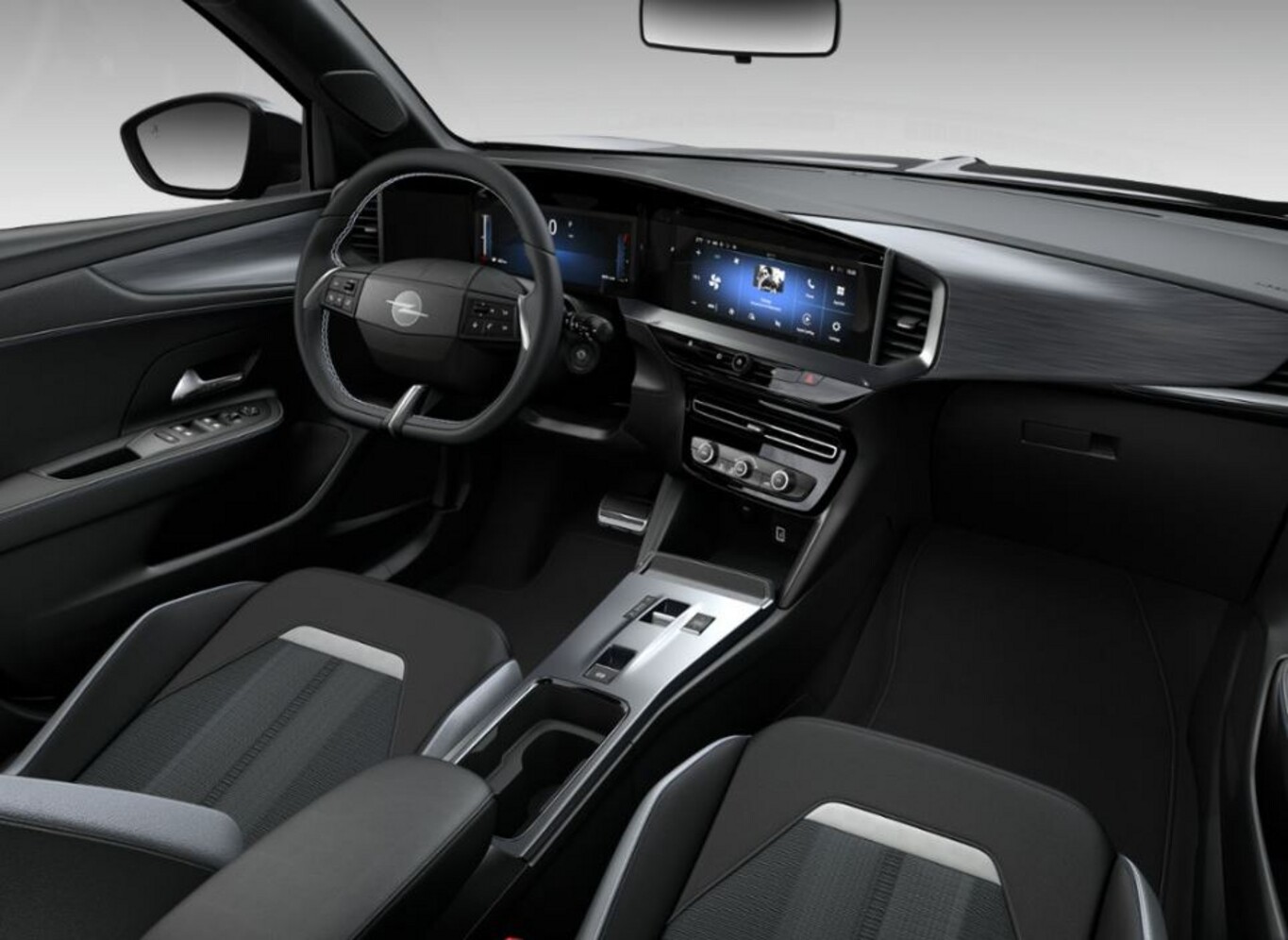 Komfort-Paket (Gepäck-/Laderaumboden doppelt / Lenkrad heizbar / Sonnenblenden mit Spiegel (beleuchtet) / Sitzheizung vorn / Lenkrad (Leder, vegan) mit Multifunktion), 10"-Touchscreen, Airbag Fahrer-/Beifahrerseite, Ambientebeleuchtung, Außenspiegel elektr. verstell- und heizbar, Fahrassistenz-System: aktiver Spurhalteassistent (Lane Assist), Fahrassistenz-System: Autonomer Notbremsassistent, Gepäcktaschen an Rückseite der Vordersitzlehnen, Geschwindigkeits-Regelanlage (Tempomat), Isofix-Aufnahmen für Kindersitz, Kindersicherung hinten, Kombiinstrument digital (10"), LM-Felgen 17", Mittelarmlehne vorn, Navigation in Verbindung mit dem Smartphone (über Apple Carplay / Android Auto /...), Pedalerie (Aluminium), Reifen 215/60 R17, Scheinwerfer LED adaptiv, Sitz vorn links und rechts verstellbar (6-fach), USB-Schnittstelle, Audiosystem Multimedia (6 Lautsprecher / Smartphone Schnittstelle (Apple CarPlay & Android Auto)), Black-Paket (Dach, Design-Ausführung (schwarz) / Kühlergrill, Opel Vizor, Rahmen in Hochglanz-Schwarz / Schriftzug Heckklappe Schwarz, Hochglanz), Sicht-Paket (Innenspiegel mit Abblendautomatik / Einschaltautomatik für Fahrlicht mit Tunnelerkennung / Scheibenwischer mit Regensensor), Parkpilotsystem hinten (Rückfahrkamera mit 180° Umgebungsansicht), Bluetooth Audio-Streaming, DAB-Tuner (Radioempfang digital), Dachhimmel schwarz, Fahrzeugschlüssel (2) beide klappbar, Karosserie: 5-türig, Motor 1,2 Ltr. - 96 kW, Otto-Partikelfilter (OPF), Radstand 2557 mm, Freisprecheinrichtung Bluetooth, Anti-Blockier-System (ABS), Antriebsart: Frontantrieb, Elektron. Stabilitäts-Programm Plus (ESP), Getriebe Automatik - mit Start-/Stop (8-Stufen), Klimaautomatik, Kopf-Airbag-System, Seitenairbag vorn, Sitzbezug / Polsterung: Stoff / Ledernachbildung, Wärmeschutzverglasung hinten abgedunkelt (Solar-Protect), Fahrassistenz-System: Verkehrszeichenerkennung, Fahrassistenz-System: Fernlichtassistent, Heckleuchten LED, Tagfahrlicht LED, Fahrassistenz-System: Müdigkeitserkennungs-Sensor