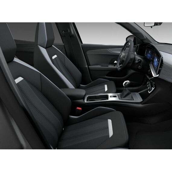 Komfort-Paket (Gepäck-/Laderaumboden doppelt / Lenkrad heizbar / Sonnenblenden mit Spiegel (beleuchtet) / Sitzheizung vorn / Lenkrad (Leder, vegan) mit Multifunktion), 2 USB-Ladeschnittstellen an der Mittelarmlehne, hinten, Ambiente-Beleuchtung, Außenspiegel elektr. verstell- und heizbar, Fahrassistenz-System: Fußgängererkennung, Geschwindigkeits-Begrenzeranlage, Geschwindigkeits-Regelanlage (Tempomat), Kindersicherung hinten, LM-Felgen 17", Navigation in Verbindung mit dem Smartphone (über Apple Carplay / Android Auto /...), Notrufsystem eCall, Reifen 215/60 R17, Schadstoffarm nach Abgasnorm Euro 6e (EU6 EA), Audiosystem Multimedia (6 Lautsprecher / Smartphone Schnittstelle (Apple CarPlay & Android Auto)), Black-Paket (Dach, Design-Ausführung (schwarz) / Kühlergrill, Opel Vizor, Rahmen in Hochglanz-Schwarz / Schriftzug Heckklappe Schwarz, Hochglanz), Sicht-Paket (Innenspiegel mit Abblendautomatik / Einschaltautomatik für Fahrlicht mit Tunnelerkennung / Scheibenwischer mit Regensensor), Parkpilotsystem hinten (Rückfahrkamera mit 180° Umgebungsansicht), Bluetooth Audio-Streaming, Fahrzeugschlüssel (2) beide klappbar, Karosserie: 5-türig, Modellpflege, Motor 1,2 Ltr. - 100 kW, Otto-Partikelfilter (OPF), Radstand 2557 mm, Freisprecheinrichtung Bluetooth, Anti-Blockier-System (ABS), Antriebsart: Frontantrieb, Elektron. Stabilitäts-Programm Plus (ESP), Getriebe 6-Gang, Klimaautomatik, Sitzbezug / Polsterung: Stoff / Ledernachbildung, Wärmeschutzverglasung hinten abgedunkelt (Solar-Protect), Fahrassistenz-System: Verkehrszeichenerkennung, Fahrassistenz-System: Fernlichtassistent, Heckleuchten LED, Scheinwerfer LED, Tagfahrlicht LED, Fahrassistenz-System: Müdigkeitserkennungs-Sensor