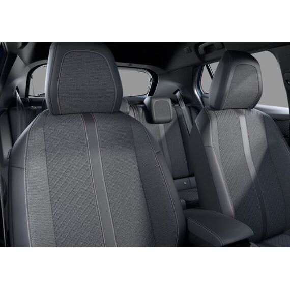 Ladevorrichtung On-Board-Lader 11 kW, Adaptive Geschwindigkeitsregelanlage (ACC) (Fahrassistenz-System: Aktiver Notbrems-Assistent (Active Safety Brake Plus)), Radioempfang digital (DAB+), Reifen-Reparaturkit, 6 Lautsprecher, Fahrassistenz-System: Totwinkel-Assistent, Fensterheber elektrisch vorn + hinten, Freisprecheinrichtung Bluetooth, Gepäckraumbeleuchtung, Kombiinstrument digital (10 Zoll), Lenkrad (Leder), Leseleuchten vorn, LM-Felgen 17", Navigation in Verbindung mit dem Smartphone (über Apple Carplay / Android Auto /...), Reifen 215/60 R17, Rückfahrkamera mit 360° Umgebungsansicht, Smartphone-Schnittstelle (Apple CarPlay & Android Auto), USB-Schnittstelle (Typ A & Typ C), Außenspiegel elektr. anklappbar (Außenspiegel anklappbar), Außenspiegel mit Abdeckkappen schwarz, Dachhimmel schwarz, Elektr. Bremskraftverteilung, Elektromotor 115 kW (cont. 62 kW), Frontscheibe geräuschdämmend, Infotainment-System i-Connect, Innenraumfilter: Staub- und Pollenfilter, Innenspiegel mit Abblendautomatik, Karosserie: 5-türig, Kartentasche an Vordersitze, Kindersicherung, manuell, Kopfstützen hinten (3-fach), Ladekabel mit Typ 2-Stecker (Mode 3), Multifunktionsanzeige mit HD Touchscreen-Farbdisplay 10 Zoll, Parkbremse elektrisch, Radstand 2605 mm, Sitze vorn höhenverstellbar, Türgriffe außen Wagenfarbe, Wärmepumpe zur Reichweitenoptimierung, Warnanlage für Sicherheitsgurte, Anti-Blockier-System (ABS), Fahrassistenz-System: Aktiver Notbrems-Assistent (Active Safety Brake), Antischlupfregelung (ASR), Antriebsart: Frontantrieb, Elektron. Stabilitäts-Programm (ESP, Bosch), Getriebe für Elektrofahrzeug, Klimaautomatik, Airbag Beifahrerseite abschaltbar, Airbag Fahrer-/Beifahrerseite, Isofix-Aufnahmen für Kindersitz, Kopf-Airbag-System, Kopf-Airbag-System hinten, Mittelarmlehne vorn, Seitenairbag vorn, Seitenscheiben hinten und Heckscheibe dunkel getönt, Sitzbezug / Polsterung: Stoff/Kunstleder, Sitzheizung vorn, Verzurrösen Laderaum, Zentralverriegelung mit Fernbedienung, Fahrmodusschalter, Dachreling schwarz, Fahrassistenz-System: Berganfahrhilfe, Fahrassistenz-System: Verkehrszeichenerkennung, Peugeot Connect-Box / SOS-Taste (Notruf für Lokalisierung Fahrzeug) Version 3S, Lenkrad mit Multifunktion, Servolenkung elektrisch, Außenspiegel elektr. verstell- und heizbar, beide, Blinkleuchte in Außenspiegel integriert, Einschaltautomatik für Fahrlicht, Scheibenwischer mit Regensensor, Scheinwerfer Eco-LED, Tagfahrlicht LED, Einparkhilfe vorn und hinten, Fahrassistenz-System: aktiver Spurassistent (Lenkunterstützung), Fahrassistenz-System: Müdigkeitserkennungs-Sensor, Reifendruck-Kontrollsystem