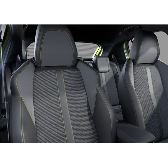 Sicht & Navigations-Paket (Induktionsladeschale für Smartphone / Multifunktionsanzeige mit HD Touchscreen-Farbdisplay 10 Zoll / Navigationssystem i-Connect Advanced / USB-Anschlüsse (Typ C und Typ A) / USB-Schnittstelle / Rückfahrkamera mit 360° Umgebungsansicht / Peugeot Connect-Box / SOS-Taste (Notruf für Lokalisierung Fahrzeug) / Fahrassistenz-System: Totwinkel-Assistent (SAM)), Ladevorrichtung On-Board-Lader 11 kW, Zentralverriegelung / Startanlage Keyless System, 6 Lautsprecher, Ambiente-Beleuchtung LED (mehrfarbig), Einparkhilfe vorn und hinten, Freisprecheinrichtung Bluetooth, Gepäckraumbeleuchtung, Kindersicherung manuell, Kombiinstrument digital (10"), Kopf-Airbag-System vorn, Leuchtweitenregulierung automatisch, LM-Felgen 17", Modelljahr 2025, Radioempfang digital (DAB+), Reifen 205/45 R17, Scheibenwaschdüsen heizbar, Smartphone-Schnittstelle (Apple CarPlay & Android Auto), Wegfahrsperre (elektronisch), Elektrik-Paket (Fensterheber elektrisch hinten, sequentiell, mit Einklemmschutz / Innenspiegel mit Abblendautomatik / Fensterheber elektrisch vorn / Fensterheber elektrisch vorn links / Außenspiegel elektr. anklappbar / Außenspiegel mit Umfeldleuchte), Fensterrahmen / Zierleisten schwarz glänzend (Fensterzierleisten schwarz glänzend), Full-LED-Paket (Blinkleuchten LED / Leuchtweitenregelung / Fahrassistenz-System: Fernlichtassistent / Scheinwerfer Full-LED), Komfort-Paket (Klimaautomatik / Scheibenwischer mit Regensensor), Sonnenblenden mit Spiegel (beleuchtet) (Sonnenblenden mit Spiegel), Sitzbezug / Polsterung: Stoff/Kunstleder (Innenausstattung: Ziernähte farbig), Zentralverriegelung mit Fernbedienung (Fernbedienung für Zentralverriegelung), Außenspiegel elektr. verstell- und heizbar, beide (Außenspiegel elektr. verstell- und heizbar, links / Außenspiegel elektr. verstell- und heizbar, rechts), Akustischer Fußgängerschutz (Außensound), Außenspiegel mit Abdeckkappen schwarz, Dachhimmel mit LED-Beleuchtung, Dachhimmel schwarz, Einstiegsleisten (Edelstahl - gebürstet), Elektr. Bremskraftverteilung, Elektrofahrzeug, Elektromotor 115 kW (cont. 62 kW), Frontscheibe geräuschdämmend, Fußraumleuchte vorn LED, Heckspoiler, Innenraumfilter: Staub- und Pollenfilter, Karosserie: 5-türig, Kartentasche an Vordersitze, Ladekabel mit Typ 2-Stecker (Mode 3), Parkbremse elektrisch, Pedale Aluminium, Pyrotechnischer Gurtstraffer, Sitz vorn links höhenverstellbar, Sitz vorn rechts höhenverstellbar, Steckdose (12V-Anschluß) in Mittelkonsole, Türgriffe außen Wagenfarbe, Wärmepumpe zur Reichweitenoptimierung, Warnanlage für Sicherheitsgurte, Anti-Blockier-System (ABS), Fahrassistenz-System: Aktiver Notbrems-Assistent (Active Safety Brake), Antischlupfregelung (ASR), Elektron. Stabilitäts-Programm (ESP, Bosch), Getriebe für Elektrofahrzeug, Airbag Beifahrerseite abschaltbar, Airbag Fahrer-/Beifahrerseite, Isofix-Aufnahmen für Kindersitz, Kopf-Airbag-System hinten, Mittelarmlehne vorn, Seitenairbag vorn, Seitenscheiben hinten und Heckscheibe dunkel getönt, Zentralverriegelung inkl. Türverriegelung automatisch, Bordcomputer, Fahrmodusschalter, Fahrassistenz-System: Berganfahrhilfe, Fahrassistenz-System: Verkehrszeichenerkennung, Geschwindigkeits-Regelanlage (Tempomat) inkl. Geschwindigkeits-Begrenzeranlage, Lenkrad (Leder), Lenkrad mit Multifunktion, Servolenkung elektrisch, Einschaltautomatik für Fahrlicht, Tagfahrlicht LED, Fahrassistenz-System: aktiver Spurassistent (Lenkunterstützung), Fahrassistenz-System: Müdigkeitserkennungs-Sensor, Reifendruck-Kontrollsystem