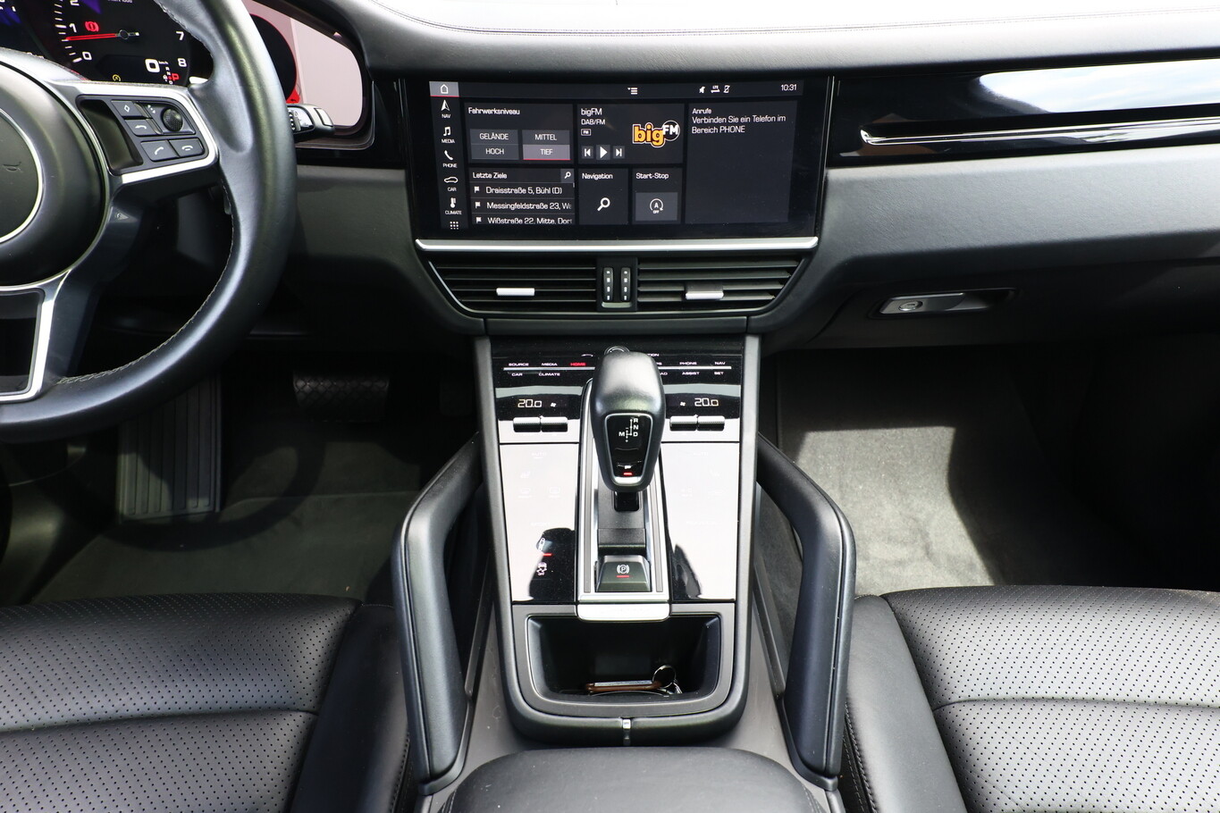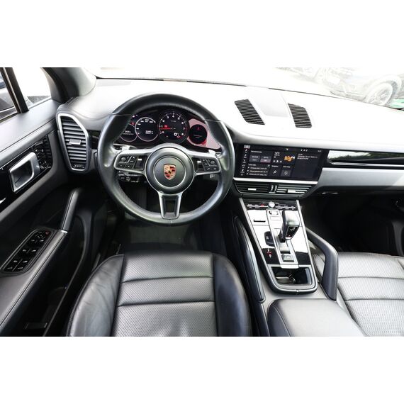 Luftfederung elektronisch geregelt (Porsche Active Suspension Management (PASM)), Panorama-Schiebedach zweiteilig vorn elektrisch, LM-Felgen vorn/hinten: 9x20 / 10,5x20 (Cayenne Sport Rad), Verglasung hinten abgedunkelt (Privacyverglasung) inkl. Wärmeschutzverglasung geräuschdämmend, Anhängerkupplung elektr. anklappbar, Hauptscheinwerfer LED inkl. Porsche Dynamic Light System (PDLS), Sitzheizung vorn + hinten, Fahrassistenz-System: Park-Assistent vorn und hinten inkl. Rückfahrkamera, Dachreling, Außen-/Innenspiegel mit Abblendautomatik, Seitenairbag hinten, Fahrer-Memory-Paket, Exterieur-Paket (Fensterzierleisten schwarz (Hochglanz) / Lufteinlassgitter schwarz hochglänzend), Apple CarPlay inkl. Sprachsteuerung, Kraftstofftank: 90 Ltr., Reifen-Reparaturkit, Reifen hinten: 305/40 R20, Reifen vorn: 275/45 R20, Warnanlage für Sicherheitsgurte, Lenkrad (Sport/Glattleder, 3-Speichen) mit Multifunktion (Lenkrad mit Schaltfunktion (Zusatz-AV zu Lenkrad)), Aktive Motorhaube, Anhänger-Stabilisierungs-Programm, Außenspiegel asphärisch, links, Blinkleuchten LED, Bremssättel schwarz eloxiert, Connect Plus (Bluetooth, Apple CarPlay, WLAN, Vehicle-Tracking-System), Dachhimmel Stoff, Dachspoiler, Einstiegsblenden (Edelstahl), Endrohrblende Sport-Auspuffanlage, Fondsitzanlage (2+1 Sitzplätze), Getränkehalter, Heckscheibe heizbar, Heckscheibenwischer, HiFi-Lautsprechersystem (10 Lautsprecher), Innenraumfilter: Aktivkohlefilter (Geruchsfilter), Interieur-Paket: schwarz (Hochglanz), Karosserie: 4-türig, Komfortsitze vorn, Lenksäule (Lenkrad) verstellbar, Leuchtweitenregelung automatisch, Motor 3,0 Ltr. - 250 kW V6 Turbo KAT, Nichtraucher-Paket, Parkbremse elektrisch, Radstand 2895 mm, Sonnenblenden mit Spiegel (beleuchtet), Sport Taste, Multimediabuchse USB-Anschlüsse im Fond, Porsche Communications Management (PCM) inkl. Online - Navigationsmodul, Vorrüstung Mobiltelefon/Handy mit Bluetooth-Schnittstelle, Anti-Blockier-System (ABS), Antischlupfregelung (ASR), Antriebsart: Allradantrieb, Automatisches Bremsen Differential (ABD), Porsche Stability Management (PSM), Porsche Traction Management (PTM), Wegfahrsperre, Getriebe Automatik - Tiptronic (8-Stufen), Klimaautomatik, Airbag Beifahrerseite abschaltbar, Airbag Fahrer-/Beifahrerseite, Innenausstattung: Teilleder, Isofix-Aufnahmen für Kindersitz an Rücksitz, Keyless-Start, Knieairbag, Kopf-Airbag-System (Curtain-Airbag), Rücksitzlehne geteilt/klappbar (40:20:40), Seitenairbag vorn, Zentralverriegelung mit Funkfernbedienung, Heckklappe mit automatischem Öffnungs- und Schließsystem, Fahrassistenz-System: Bergabfahr-Assistent (PHC), Fahrassistenz-System: Berganfahr-Assistent (Hill-Holder), Geschwindigkeits-Regelanlage (Tempomat), Außenspiegel elektr. anklappbar, Außenspiegel elektr. verstell- und heizbar, Außenspiegel mit Umfeldleuchte LED, Einschaltautomatik für Fahrlicht, Heckleuchten LED, Scheibenwischer mit Regensensor, Tagfahrlicht 4-Punkt-LED, Reifendruck-Kontrollsystem, Diebstahl-Warnanlage mit Innenraumüberwachung, Start/Stop-Anlage