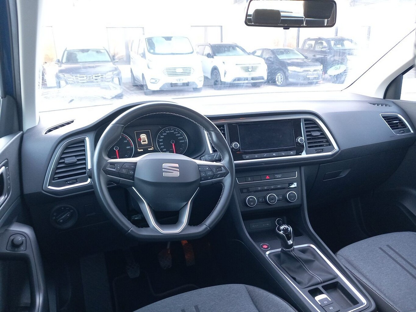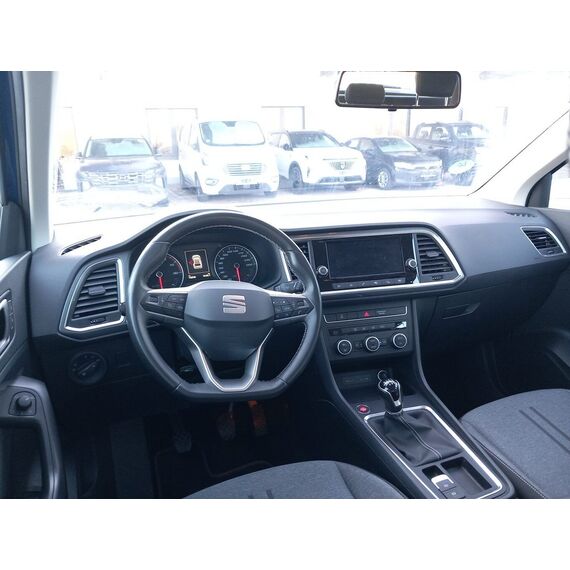 Full Link (MirrorLink, Apple CarPlay und Android Auto), 21-cm-Farb-Touchscreen, Außenspiegel elektr. verstell-, heiz- und ankappbar, Bluetooth (Handy-Verbindungssystem, Audio-Streaming), Dachhimmel grau, Geschwindigkeitsbegrenzer, Geschwindigkeitsregelanlage, Leichtmetallfelgen 17Zoll, Media System Plus, Navigation in Verbindung mit dem Smartphone (über Apple Carplay / Android Auto /...), Nebelscheinwerfer mit Kurvenfunktion, Radio mit FM-Tuner, Radioempfang (DAB), Reifengröße 215/55 R17, Rückenlehne geteilt mit Mittelarmlehne, Schadstoffarm nach Abgasnorm Euro 6d-ISC-FCM (EU6 AP), Schlüsselloser Motorstart Kessy Go, USB-Ladeanschlüssse hinten (2x Typ C), USB-Schnittstelle vorn (2x Typ C), SEAT Media-System Plus (Audiosystem mit Touchscreen-Farbdisplay / Mobile Online Dienste Seat Connect / Radioempfang digital (DAB+) / USB-Schnittstelle vorn (2-fach, Typ C)), Scheinwerfer Voll-LED (Leuchtweitenregelung automatisch), 3. Bremsleuchte, 8 Lautsprecher, Ablagetasche an Vordersitzlehnen, Außenspiegel Wagenfarbe, Fußraumbeleuchtung vorn, Gepäckraumabdeckung / Rollo, Karosserie: 5-türig, Lendenwirbelstütze Sitz vorn links, verstellbar, Lendenwirbelstütze Sitz vorn rechts, verstellbar, Mittelkonsole vorn mit Mittelarmlehne, Becherhalter, Ablagebox und Luftdüsen hinten, Motor 1,5 Ltr. - 110 kW 16V TSI ACT, Otto-Partikelfilter (OPF), Radstand 2638 mm, Reifen-Reparaturset, Schalt-/Wählhebelgriff Leder, Sitz vorn links höhenverstellbar, Sitz vorn rechts höhenverstellbar, Sitzbezug / Polsterung: Stoff, USB-Ladeanschlüsse (2-fach, Typ C) für 2.Sitzreihe, Anti-Blockier-System (ABS), Antriebs-Schlupfregelung (ASR), Antriebsart: Frontantrieb, Elektron. Querdifferentialsperre (XDS), Elektron. Stabilitätskontrolle (ESC), Getriebe 6-Gang, Klimaanlage Climatronic 2-Zonen, Airbag Beifahrerseite abschaltbar, Airbag Fahrer-/Beifahrerseite, Isofix-Aufnahmen für Kindersitz, Knieairbag Fahrerseite, Kopf-Airbag-System, Rücksitzlehne geteilt/klappbar (1/3-2/3), Seitenairbag, Bordcomputer, Fahrassistenz-System: Berganfahr-Assistent (Hill-Holder), Lenkrad (Sport/Leder) mit Multifunktion, Servolenkung elektronisch gesteuert (Servotronic), Außenspiegel elektr. verstell-, heiz- und anklappbar mit Spiegelabsenkung, Blinkleuchten LED in Außenspiegel integriert, Heckleuchten LED, Tagfahrlicht LED, Einparkhilfe hinten, Fahrassistenz-System: Müdigkeitserkennung