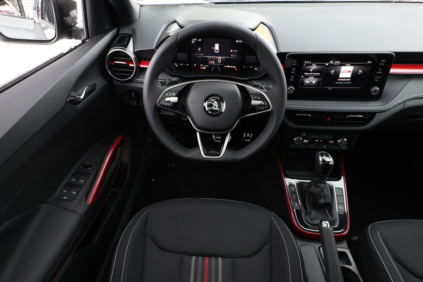 Panoramadach fest (Glas), Heckleuchten LED, Außenspiegel elektr. verstell-, heiz- und anklappbar, mit Abblendautomatik (Außenspiegel mit Abblendautomatik, links), Fahrassistenz-System: Fernlichtassistent (Innenspiegel mit Abblendautomatik / Fahrassistenz-System: Einschaltautomatik für Fahrlicht (Fahrlichtassistent) / Scheibenwischer mit Regensensor), Fahrassistenz-System: Verkehrszeichenerkennung, Gurtwarnanlage, Lenkrad heizbar (Sport/Leder mit Ziernaht) mit Multifunktion und Schaltfunktion, LM-Felgen 6x16, Navigation in Verbindung mit dem Smartphone (über Apple Carplay / Android Auto /...), Reifen 195/55 R16, Rücksitzlehne geteilt/klappbar (60:40), Sitzbezug / Polsterung: Monte Carlo (Stoff), Ausstattungs-Paket: Colour Concept Schwarz (Außenspiegel schwarz lackiert / Dach schwarz lackiert), Ausstattungs-Paket: Parken (Schließ-/Startsystem Kessy / Fahrassistenz-System: Fahrprofilauswahl / Rückfahrkamera / Einparkhilfe vorn und hinten), Sitz vorn rechts höhenverstellbar (Lendenwirbelstütze Sitz vorn links / Lendenwirbelstütze Sitz vorn rechts), Fahrassistenz-System: Spurhalteassistent (Lane Assist) (Frontkamera), 6 Lautsprecher, Ablagefach für Regenschirm, Ambiente-Beleuchtung LED, Bremsenergierückgewinnung, Dachhimmel schwarz, Gepäck-/Laderaumabdeckung, Infotainment-System mit 8,2" Display, Innenausstattung: Dekoreinlagen Rot, Karosserie: 5-türig, Lenksäule (Lenkrad) verstellbar (vertikal / axial), Motor 1,0 Ltr. - 85 kW TSI, Otto-Partikelfilter (OPF), Radioempfang digital (DAB+), Schalt-/Wählhebelgriff Leder, Sitz vorn links höhenverstellbar, Sonnenblende links mit Spiegel, Sonnenblende rechts mit Spiegel, Freisprechanlage Telefon mit Bluetooth, USB-Schnittstelle vorn (2-fach, Typ C), Wireless SmartLink, Anti-Blockier-System (ABS), Antriebs-Schlupfregelung (ASR), Elektron. Stabilitäts-Programm (ESP), Wegfahrsperre, Getriebe 7-Gang - Doppelkupplungsgetriebe DSG, Klimaanlage Climatronic 2-Zonen, Airbag Beifahrerseite abschaltbar, Airbag Fahrer-/Beifahrerseite, Fensterheber elektrisch hinten, Fensterheber elektrisch vorn, Isofix-Aufnahmen für Kindersitz an Beifahrersitz, Isofix-Aufnahmen für Kindersitz an Rücksitz, Kopf-Airbag-System, Mittelarmlehne vorn, Seitenairbag vorn, Seitenscheiben hinten und Heckscheibe abgedunkelt (SunSet), Sitzheizung vorn, Sportsitze, Zentralverriegelung, Fahrassistenz-System: Auffahrwarnsystem mit City-Notbremsfunktion (Frontradar-Assistent), Fahrassistenz-System: Berganfahr-Assistent (Hill-Holder), Geschwindigkeits-Regelanlage (Tempomat) inkl. Geschwindigkeits-Begrenzeranlage, Notrufsystem, Servolenkung, Lichtassistent (Coming Home, Leaving Home), Nebelscheinwerfer, Scheinwerfer LED, Tagfahrlicht LED, Fahrassistenz-System: Müdigkeitserkennung, Reifendruck-Kontrollsystem, Start/Stop-Anlage