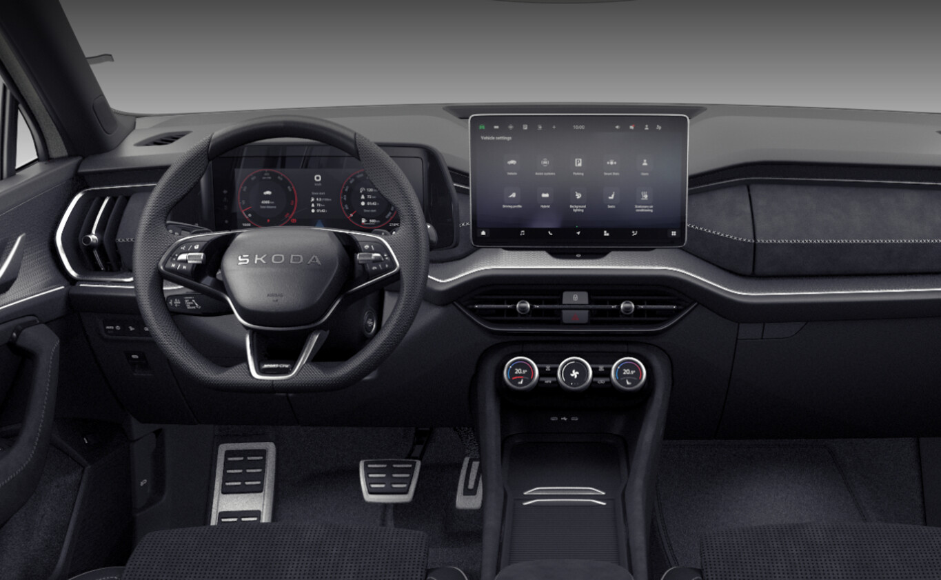 3.Sitzreihe (2 Sitze zusätzlich), Fahrassistenz-Paket (Fahrassistenz-Paket: Travel Assist / Fahrassistenz-Paket: Stau- und Notfallassistent / Fahrassistenz-System: Autom. Distanzregelung (pACC) mit vorausschauender Geschw.-Regelung / Fahrassistenz-System: aktiver Spurhalteassistent (Lenkunterstützung) / Insassen-Schutzsystem proaktiv), Ausstattungs-Paket: Family (Abfallbehälter / Ablagebox hinten / Tablet-Halterung / Sonnenschutzrollo an Seitenscheiben hinten), Winter-Paket (Sitzheizung hinten), 12V Steckdose, Ablagebox im Gepäckraum, Allwetter-, Kurven- und Autobahnlicht, Heckspoiler, Infotainment-System mit 13 Zoll Farb-Display, Innenbeleuchtung vorn und hinten, Kofferraum / Heckklappe elektrisch betätigt (öffnen + schliessen), Lendenwirbelstütze pneumatisch verstellber vorn links, Lendenwirbelstütze vorn rechts, Lichtassistent (Coming, Leaving Home), Lichtautomatik mit Abbiegelicht (AFS), LM-Felgen 7,5x19 "Tirsuli", Navigationssystem 13 Zoll, Radioempfang Digigtal (DAB), Radschrauben diebstahlhemmend, Reifen 235/50 R19, Schadstoffarm nach Abgasnorm Euro 6e (EU6EA), Seitenscheiben hinten und Heckscheibe abgedunkelt (SunSet), Sitzbezug / Polsterung: Microfaser/ Kunstleder, Stoßfänger Sport, Tagfahrlicht, Vorbereitung für Skoda Connect, Licht- und Sicht-Paket (Fahrassistenz-System: Dynamischer Fernlichtassistent (Dynamic Light Assist) / Heckleuchten LED (Kristallglas-Optik) / Heckleuchten LED mit dynamischem Blinklicht / Matrix-LED-Scheinwerfer), Zentralverriegelung (Fernbedienung für Zentralverriegelung), 8 Lautsprecher, Ambiente-Beleuchtung LED, Anhängerkupplung Vorbereitung, Außenspiegel schwarz lackiert, Dachreling schwarz, hochglänzend, Edelstahlpedale Sportdesign, Einstiegsleisten (Edelstahl), Fahrassistenz-System: Abbiegebremsfunktion und Ausweichunterstützung, Fensterzierleisten schwarz, hochglänzend, Karosserie: 5-türig, Kombiinstrument digital (virtual cockpit plus), Kopfstützen hinten, Kopfstützen vorn, Lehnenentriegelung der Rücksitzlehne im Kofferraum, Mild-Hybrid 110 kW (Motor 1,5 Ltr. - 110 kW TSI mHEV), Mild-Hybrid-Technologie, Otto-Partikelfilter (OPF), Radstand Standard, Reifen-Reparaturkit, Sonnenblenden mit Spiegel (LED-Beleuchtung), Warnanlage für Sicherheitsgurte hinten, Warnanlage für Sicherheitsgurte, Fahrer-/Beifahrerseite, USB-Schnittstelle vorn (2-fach, Typ C), Wireless SmartLink, Anti-Blockier-System (ABS), Bremsassistent, Antriebsart: Frontantrieb, Elektron. Stabilitäts-Programm (ESP), Getriebe 7-Gang - Doppelkupplungsgetriebe DSG, Klimaanlage Climatronic 3-Zonen, Airbag Beifahrerseite abschaltbar, Airbag Fahrerseite, Isofix-Aufnahmen für Kindersitz an Beifahrersitz, Isofix-Aufnahmen für Kindersitz an Rücksitz, Kopf-Airbag-System, Rücksitzlehne geteilt/klappbar, Schließ-/Startsystem Kessy inkl. Diebstahl-Warnanlage, Seitenairbag vorn, Seitenairbag vorn mitte (Center-Airbag), Sitzheizung vorn, Sportsitze, Fahrassistenz-System: Auffahrwarnsystem mit City-Notbremsfunktion (Frontradar-Assistent), Fahrassistenz-System: Berganfahr-Assistent (Hill-Holder), Fahrassistenz-System: Verkehrszeichenerkennung, Rückfahrkamera, Lenkrad heizbar (Sport/Leder) mit Multifunktion und Schaltfunktion, Servolenkung, Einparkhilfe vorn und hinten, Fahrassistenz-System: Müdigkeitserkennung, Fahrassistenz-System: Spurhalteassistent (Lane Assist), Fahrassistenz-System: Spurwechselassistent inkl. Auspark-Assistent und Ausstiegswarnung, Reifendruck-Kontrollsystem (Aktiv), Start/Stop-Anlage