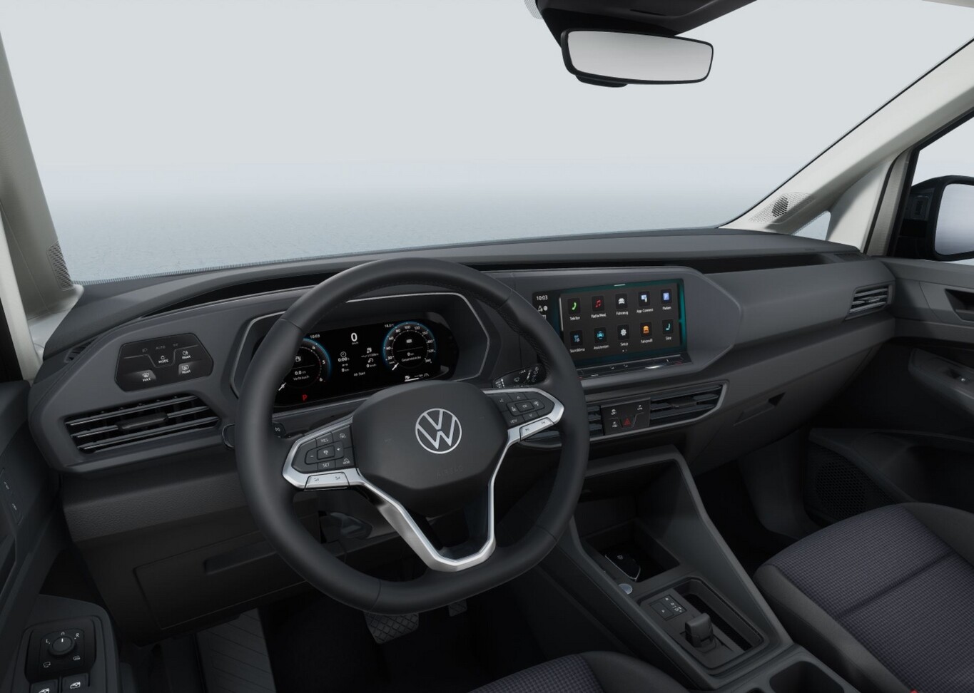LM-Felgen 6,5x16 (Wien), Klimaanlage Climatronic 2-Zonen, Ausstattungs-Paket: Licht + Sicht (Innenspiegel mit Abblendautomatik / Automatische Fahrlichtschaltung (ALS) mit Leaving Home / Coming-Home-Lichtfunktion / Scheibenwischer mit Licht- und Regensensor), Mittelarmlehne vorn höhen-/längsverstellbar, Ablagefach, Luftausströmer hinten, Stoßfänger Wagenfarbe, Dachreling, Assistenz-Paket Plus (Fahrassistenz-System: Automatische Distanzregelung (ACC) / Außenspiegel elektr. verstell-, heiz- und anklappbar / Fahrassistenz-System: Spurwechselassistent (Side Assist) mit Auspark-Assistent), Lendenwirbelstützen vorn, App-Connect, Sitze vorn höhenverstellbar, Funkschlüssel (4) klappbar, 3. Sitzreihe mit 2 Einzelsitzen, Digital Cockpit (Instrumentenanzeige digital), Einparkhilfe vorn und hinten, Gepäckraumabdeckung, Isofix-Aufnahmen für Kindersitz an Rücksitze, Lenkrad (Leder) mit Multifunktion, Leuchtweitenregulierung, Navigation in Verbindung mit dem Smartphone (über Apple Carplay / Android Auto /...), Reifen 205/60 R16, Rückfahrkamera, Rücksitzlehne geteilt/klappbar, Schlüsselloses Startsystem Keyless Go, Serviceintervall 30.000 km oder 2 Jahre, Außenspiegel schwarz lackiert, Türgriffe außen Wagenfarbe, Abdeckung Schiebetürleiste silber (Abdeckung Schiebetürleiste silber / Außenspiegel schwarz lackiert / Türgriffe außen Wagenfarbe), Ablagefächer in Dachkonsole, Audiosystem Composition (Touchscreen-Farbdisplay 10"), Bluetooth-Schnittstelle für Mobiltelefon, Digital Cockpit Basis, Fahrassistenz-System: Abbiegebremsfunktion und Ausweichunterstützung, Getränkehalter vorn, Handschuhfach mit Klappe, beleuchtet, Heckklappe mit Verglasung, Heckleuchten Standard, Heckscheibe heizbar, Heckscheibenwischer, Karosserie: 5-türig, Kindersicherung im Fahrgastraum elektr. betätigt, Lautsprecher (6), Leseleuchten hinten LED, Mobile Online Dienste Vorbereitung We Connect und We Connect Plus, Motor 2,0 Ltr. - 90 kW TDI, Nichtraucher-Paket, Radioempfang digital (DAB+), Radstand 2970 mm, Schiebetür links, Schiebetür rechts, SCR-System (AdBlue-Technologie), Seitenfenster im Lade-/Fahrgastraum hinten links, fest, Seitenfenster im Lade-/Fahrgastraum hinten rechts, fest, Seitenfenster im Lade-/Fahrgastraum vorn links, fest, Seitenfenster im Lade-/Fahrgastraum vorn rechts, fest, Sicherheitsgurte vorn mit Gurtstraffer, höhenverstellbar, Sitzbezug / Polsterung: Stoff Double Grid, Sonnenblenden mit Spiegel, Steckdose 12V im Koffer-/Laderaum, Türdichtungen mit Staubschutz, Türverkleidung Kunststoff, Armauflage in Stoff, Vorbereitung für Alkohol-Wegfahrsperre (Alcolock), Warnanlage für Sicherheitsgurte vorn und hinten, Multimedia-Schnittstelle USB (Typ C, mit erhöhter Ladeleistung), Anti-Blockier-System (ABS), Antriebsart: Frontantrieb, Elektron. Stabilitäts-Programm (ESP) Bremsassistent, ASR/ABS, EDS, MSR, Wegfahrsperre (elektronisch), Getriebe 7-Gang - Doppelkupplungsgetriebe DSG, Luftzusatzheizung elektrisch, Airbag Fahrer-/Beifahrerseite, Beifahrerairbag abschaltbar, Seitenairbag vorn mit Center-Airbag, Kopf-Airbag-Einheit vorn und hinten, Zentralverriegelung mit Fernbedienung, Frontscheibe Verbundglas getönt, Fahrassistenz-System: Verkehrszeichenerkennung, Frontkamera (Multifunktionskamera Frontscheibe), Notrufsystem, Servolenkung elektronisch gesteuert (Servotronic), Fahrassistenz-System: Ablenkungs- und Müdigkeitserkennung, Fahrassistenz-System: Kreuzungs-Assistent, Fahrassistenz-System: Spurhalteassistent (Lane Assist), Fahrassistenz-System: Umfeldbeobachtungssystem (Front assist) mit City-Notbremsfunktion, Reifenkontroll-Anzeige, Start/Stop-Anlage