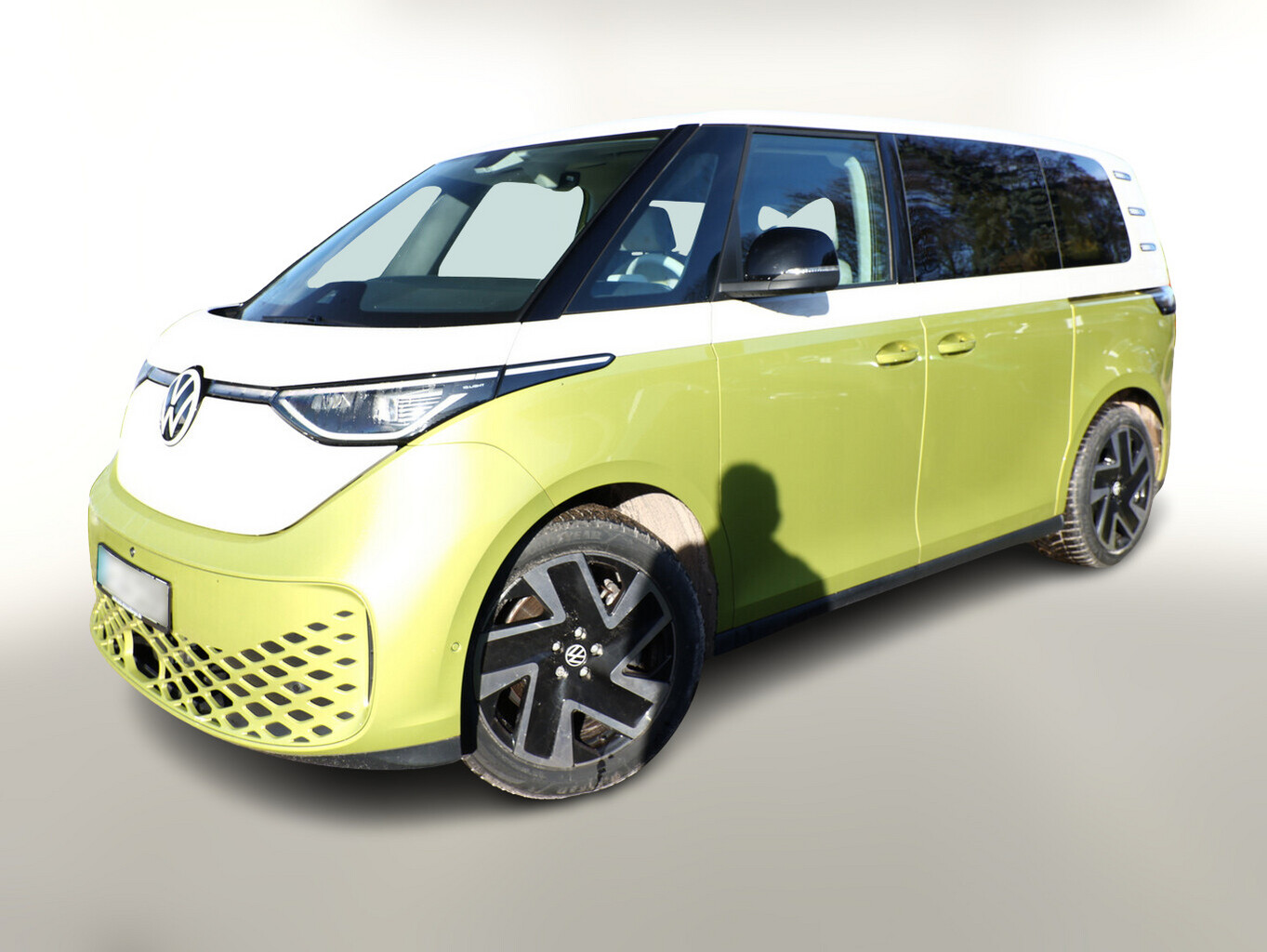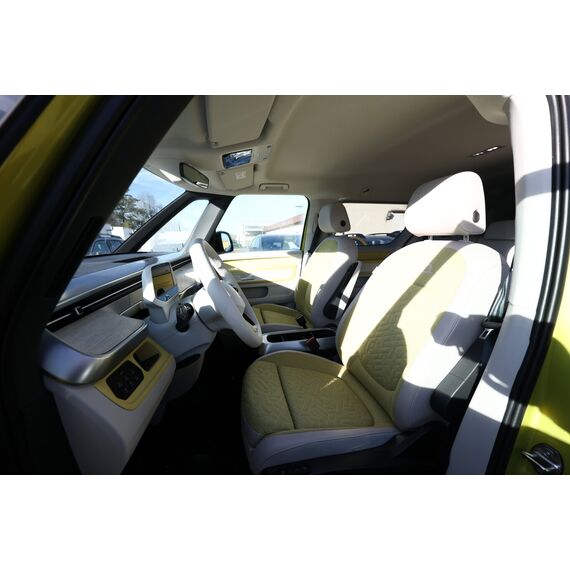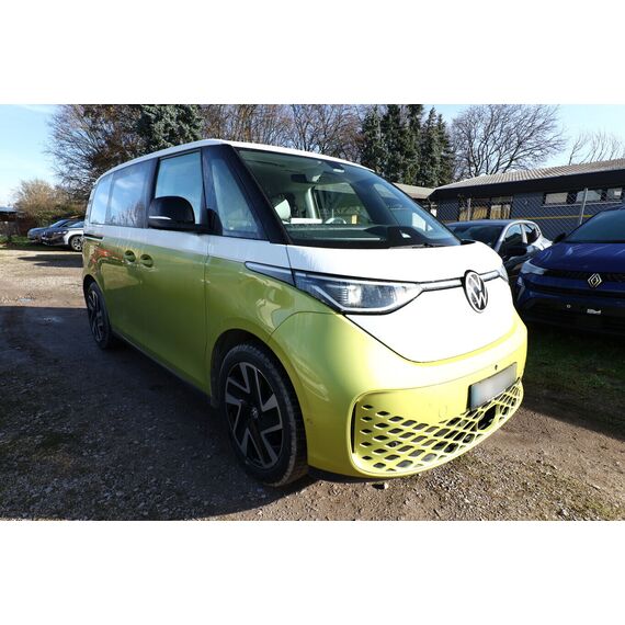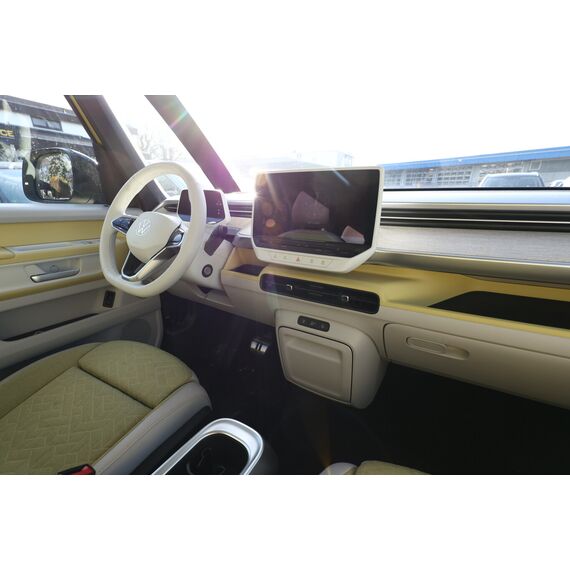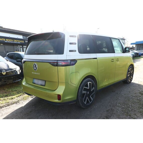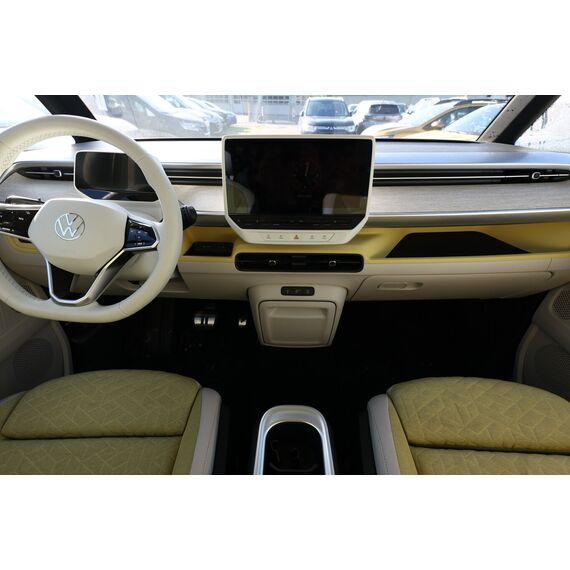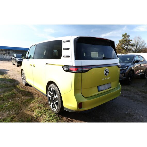 Interieur-Paket Style Plus (Lenkrad weiß) (Ambiente-Beleuchtung (30 Farben) / Innenausstattung: Bedienelemente, Lenkrad und Einfassung Instrumente weiß / Sitzbezug / Polsterung: Stoff Seaqual / Sitze im Fahrerhaus: Fahrer- und Beifahrersitz Komfort / Sitze im Fahrerhaus: Fahrer- und Beifahrersitz mit Armlehnen beidseitig / Sitze im Fahrerhaus: Lendenwirbelstützen Fahrer- und Beifahrersitz, elektr. verstellbar / Sitze im Fahrerhaus: Fahrer- und Beifahrersitz elektr. verstellbar mit Memory, Einstiegshilfe links / Sitze im Fahrerhaus: Fahrer- und Beifahrersitz heizbar / Lenkrad heizbar (Kunstleder) mit Multifunktion), Lackierung: 2-Farben-Lackierung uni / Metallic, Fahrassistenz-Paket Plus inkl. Umgebungsansicht und Rückfahrkamera (Schließ-/Startsystem Keyless Advanced mit Safesicherung / Türgriffschalen außen beleuchtet / Fahrassistenz-System: Autom. Distanzregelung (ACC inkl. Stop&Go-Funktion und Geschw.-Begrenzer) / Rückfahrkamera mit 360° Umgebungsansicht (Area View) / Lenkrad heizbar (Kunstleder) mit Multifunktion / Fahrassistenz-System: Memoryfunktion für Park Assist Plus / Fahrassistenz-System: Parklenkassistent (Park Assist) inkl. Einparkhilfe vorn und hinten / Fahrassistenz-Paket: Travel Assist, Emergency Assist und Lane Assist / Fahrassistenz-System: Spurwechselassistent (Side Assist / Blind Spot Sensor) / Diebstahl-Warnanlage + Innenraumüberwachung / Abschleppschutz + Back-up-Horn), Ausstattungs-Paket: Easy Open & Close Plus (Schließ-/Startsystem Keyless Advanced mit Safesicherung / Türgriffschalen außen beleuchtet / Umfeldleuchte in Heckklappe / Heckklappe elektr. betätigt Easy Open (öffnen + schliessen, sensorgesteuert) / Schiebetür Lade-/Fahrgastraum links elektr. betätigt / Schiebetür Lade-/Fahrgastraum rechts elektr. betätigt / Diebstahl-Warnanlage + Innenraumüberwachung / Abschleppschutz + Back-up-Horn), Ausstattungs-Paket: Komfort-Paket Plus (Gepäckraum-Abtrennung / Trennnetz / Innenspiegel mit Abblendautomatik / Mittelkonsole vorn variabel (ID.Buzz Box) / Multiflex-Board / Scheibenwaschdüsen beheizt / Multimedia-Schnittstelle 2 x USB (Typ C) vorn, USB-Ladeanschluß (Typ C) 1 x vorn, hinten / Sitze im Fahrerhaus: Fahrer- und Beifahrersitz heizbar / Frontscheibe heizbar / Lenkrad heizbar (Kunstleder) mit Multifunktion / Regensensor), Ausstattungs-Paket: Design (Leuchtweitenregelung automatisch und Kurvenlicht dynamisch / Lichtleiste zwischen Scheinwerfer / Pedale Edelstahl / Fahrassistenz-System: Dynamische Fernlichtregulierung (Dynamic Light Assist) / Heckleuchten LED, Blinkleuchten dynamisch / Matrix-LED-Scheinwerfer (IQ.Light)), Ausstattungs-Paket: Infotainment Plus (Audiosystem Ready 2 Discover (Touchscreen-Farbdisplay 12 Zoll) / Lautsprecher (9) / Mobiltelefon Schnittstelle Comfort mit kabelloser Ladefunktion / Navigationsfunktion Discover Pro / Sprachsteuerungs-System), Anhängerkupplung klappbar (elektr. Entriegelung), LM-Felgen vorn/hinten: 8x20 / 10x20 (Solna, schwarz glanzgedreht), Steckdose 230V im Fahrerhaus, Ladekabel mit Schukostecker (10 A, Mode 2), Gepäckraumbeleuchtung, Reifengröße hinten 265/45 R20, Reifengröße vorn: 235/50 R20, Akustischer Fußgängerschutz, Außensound (e-sound), Antennen-Diversity, Außenspiegel konvex, links und rechts, Außenspiegel schwarz lackiert und Türgriffe außen in Wagenfarbe, Bodenbelag: Teppich verstärkt, DC / DC Wandler 3 kW, Diebstahlsicherung für Räder (Felgenschlösser), Elektromotor 150 kW (cont. 70 kW), Fahrassistenz-System: Ausweich-Assistent und Abbiege-Assistent, Fußraumbeleuchtung vorn und hinten, Gepäckraumabdeckung / Rollo, Heckklappe mit Verglasung, Heckscheibe, Heckscheibenwischer mit Intervallschaltung, HV-Batterie 82 kWh brutto / 77 kWh netto, Innenleuchten im Lade-/FG-Raum: LED (Gepäckraum), Innenraumfilter: Aktiv Kombifilter, Insassen-Schutzsystem proaktiv, Karosserie/Aufbau: Bus, Ladekabel mit Typ 2-Stecker (16 A, Mode 3), Mobile Online Dienste App-Connect inkl. App-Connect Wireless (Apple CarPlay, Android Auto), Nichtraucher-Paket, Radioempfang digital (DAB+), Radstand 2989 mm, Radstand kurz, Schnellladevorrichtung (CCS-Ladedose), Schriftzug / Plakette D-Säule, Service-System: Intelligente Fahrzeugvernetzung (Car2X), Sicherheitsgurte vorn mit Gurtstraffer und Endbeschlagstraffer, höhenverstellbar, Sitze im Fahrerhaus: Beifahrereinzelsitz, Sitze im Lade-/FG-Raum: 1.Reihe, 3er-Sitzbank, geteilt/klappbar, Sonnenblenden mit Spiegel (beleuchtet), Stoßfänger in Wagenfarbe, Umfeldbeleuchtung seitlich mit Projektionsfunktion, Warnanlage für Sicherheitsgurte vorn und hinten, Zul. Gesamtgewicht 3,00 t, Anti-Blockier-System (ABS), Antriebsart: Heckantrieb, Getriebe für Elektrofahrzeug, Klimaautomatik Climatronic (2-Zonen, Standklimatisierung), Airbag Fahrer-/Beifahrerseite, Beifahrerairbag abschaltbar, Kopf-Airbag-System hinten, Seitenairbag, Kopfairbag und Center-Airbag vorn, Verglasung hinten abgedunkelt, Fahrassistenz-System: Verkehrszeichenerkennung, Multifunktionskamera / Frontkamera, Notrufsystem, Servolenkung elektro-mechanisch, geschwindigkeitsabhängig, Außenspiegel elektr. verstell-, heiz- und anklappbar mit Spiegelabsenkung, Fahrassistenz-System: Müdigkeitserkennungs-Sensor, Fahrassistenz-System: Notbrems-Assistent (Front Assist) inkl. Fußgänger- und Fahrraderkennung, Fahrassistenz-System: Spurhalteassistent (Lane Assist), Reifenkontroll-Anzeige