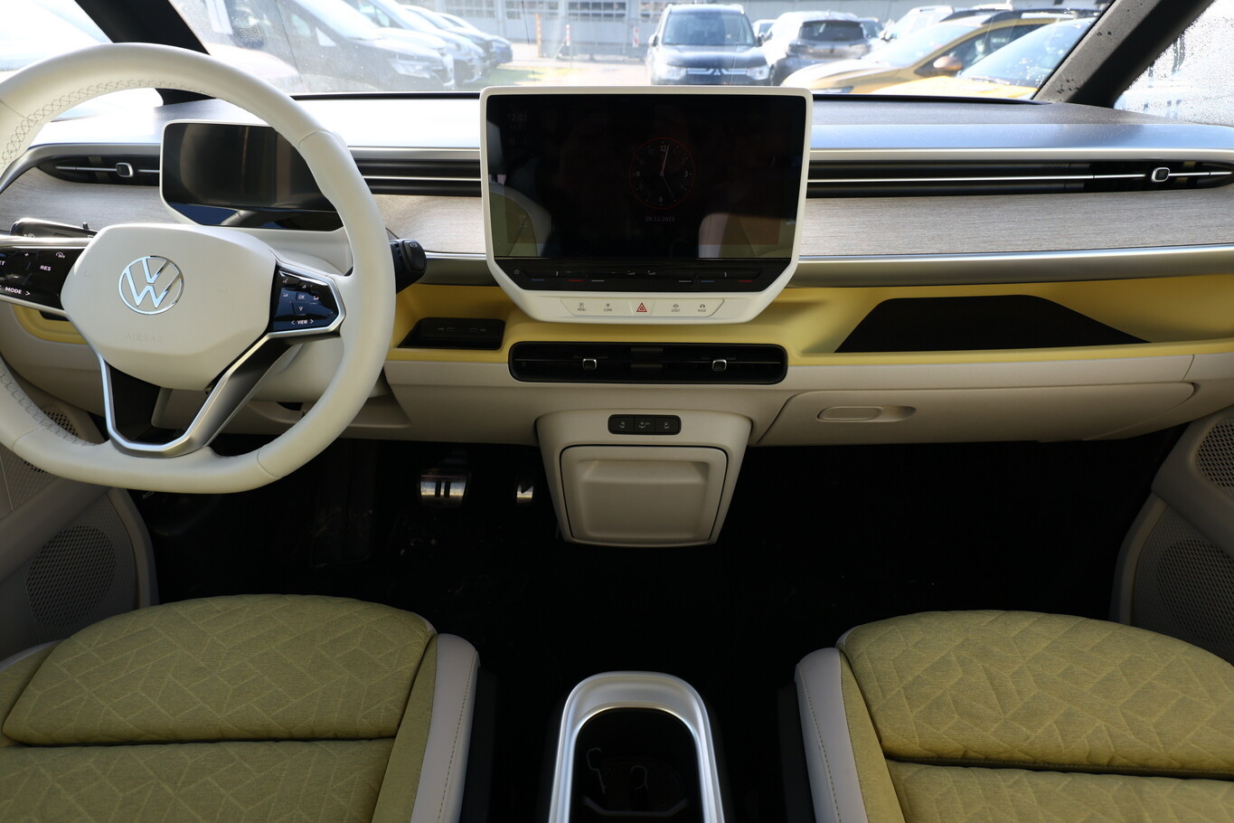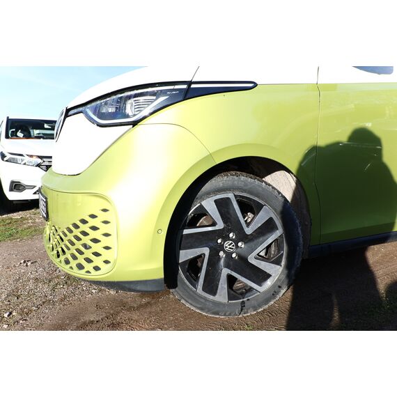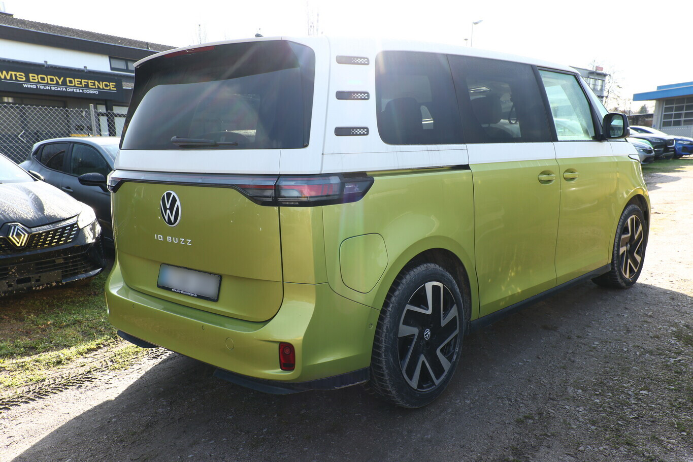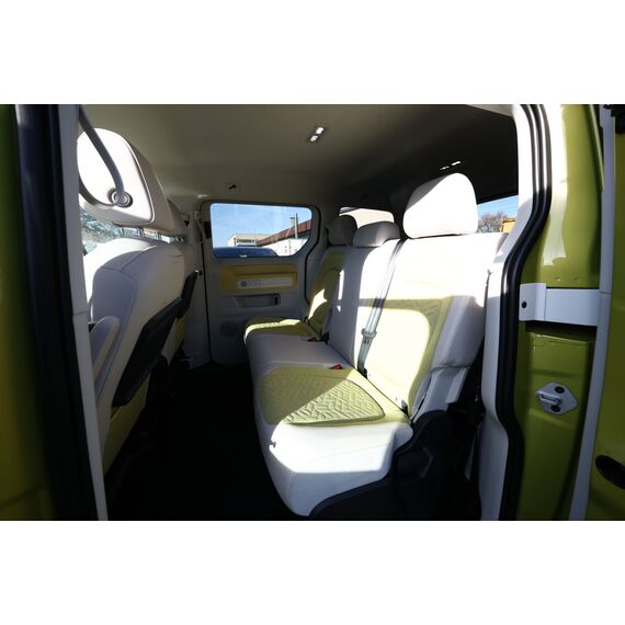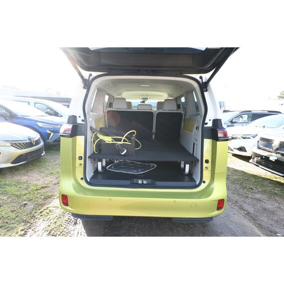 Interieur-Paket Style Plus (Lenkrad weiß) (Ambiente-Beleuchtung (30 Farben) / Innenausstattung: Bedienelemente, Lenkrad und Einfassung Instrumente weiß / Sitzbezug / Polsterung: Stoff Seaqual / Sitze im Fahrerhaus: Fahrer- und Beifahrersitz Komfort / Sitze im Fahrerhaus: Fahrer- und Beifahrersitz mit Armlehnen beidseitig / Sitze im Fahrerhaus: Lendenwirbelstützen Fahrer- und Beifahrersitz, elektr. verstellbar / Sitze im Fahrerhaus: Fahrer- und Beifahrersitz elektr. verstellbar mit Memory, Einstiegshilfe links / Sitze im Fahrerhaus: Fahrer- und Beifahrersitz heizbar / Lenkrad heizbar (Kunstleder) mit Multifunktion), Lackierung: 2-Farben-Lackierung uni / Metallic, Fahrassistenz-Paket Plus inkl. Umgebungsansicht und Rückfahrkamera (Schließ-/Startsystem Keyless Advanced mit Safesicherung / Türgriffschalen außen beleuchtet / Fahrassistenz-System: Autom. Distanzregelung (ACC inkl. Stop&Go-Funktion und Geschw.-Begrenzer) / Rückfahrkamera mit 360° Umgebungsansicht (Area View) / Lenkrad heizbar (Kunstleder) mit Multifunktion / Fahrassistenz-System: Memoryfunktion für Park Assist Plus / Fahrassistenz-System: Parklenkassistent (Park Assist) inkl. Einparkhilfe vorn und hinten / Fahrassistenz-Paket: Travel Assist, Emergency Assist und Lane Assist / Fahrassistenz-System: Spurwechselassistent (Side Assist / Blind Spot Sensor) / Diebstahl-Warnanlage + Innenraumüberwachung / Abschleppschutz + Back-up-Horn), Ausstattungs-Paket: Easy Open & Close Plus (Schließ-/Startsystem Keyless Advanced mit Safesicherung / Türgriffschalen außen beleuchtet / Umfeldleuchte in Heckklappe / Heckklappe elektr. betätigt Easy Open (öffnen + schliessen, sensorgesteuert) / Schiebetür Lade-/Fahrgastraum links elektr. betätigt / Schiebetür Lade-/Fahrgastraum rechts elektr. betätigt / Diebstahl-Warnanlage + Innenraumüberwachung / Abschleppschutz + Back-up-Horn), Ausstattungs-Paket: Komfort-Paket Plus (Gepäckraum-Abtrennung / Trennnetz / Innenspiegel mit Abblendautomatik / Mittelkonsole vorn variabel (ID.Buzz Box) / Multiflex-Board / Scheibenwaschdüsen beheizt / Multimedia-Schnittstelle 2 x USB (Typ C) vorn, USB-Ladeanschluß (Typ C) 1 x vorn, hinten / Sitze im Fahrerhaus: Fahrer- und Beifahrersitz heizbar / Frontscheibe heizbar / Lenkrad heizbar (Kunstleder) mit Multifunktion / Regensensor), Ausstattungs-Paket: Design (Leuchtweitenregelung automatisch und Kurvenlicht dynamisch / Lichtleiste zwischen Scheinwerfer / Pedale Edelstahl / Fahrassistenz-System: Dynamische Fernlichtregulierung (Dynamic Light Assist) / Heckleuchten LED, Blinkleuchten dynamisch / Matrix-LED-Scheinwerfer (IQ.Light)), Ausstattungs-Paket: Infotainment Plus (Audiosystem Ready 2 Discover (Touchscreen-Farbdisplay 12 Zoll) / Lautsprecher (9) / Mobiltelefon Schnittstelle Comfort mit kabelloser Ladefunktion / Navigationsfunktion Discover Pro / Sprachsteuerungs-System), Anhängerkupplung klappbar (elektr. Entriegelung), LM-Felgen vorn/hinten: 8x20 / 10x20 (Solna, schwarz glanzgedreht), Steckdose 230V im Fahrerhaus, Ladekabel mit Schukostecker (10 A, Mode 2), Gepäckraumbeleuchtung, Reifengröße hinten 265/45 R20, Reifengröße vorn: 235/50 R20, Akustischer Fußgängerschutz, Außensound (e-sound), Antennen-Diversity, Außenspiegel konvex, links und rechts, Außenspiegel schwarz lackiert und Türgriffe außen in Wagenfarbe, Bodenbelag: Teppich verstärkt, DC / DC Wandler 3 kW, Diebstahlsicherung für Räder (Felgenschlösser), Elektromotor 150 kW (cont. 70 kW), Fahrassistenz-System: Ausweich-Assistent und Abbiege-Assistent, Fußraumbeleuchtung vorn und hinten, Gepäckraumabdeckung / Rollo, Heckklappe mit Verglasung, Heckscheibe, Heckscheibenwischer mit Intervallschaltung, HV-Batterie 82 kWh brutto / 77 kWh netto, Innenleuchten im Lade-/FG-Raum: LED (Gepäckraum), Innenraumfilter: Aktiv Kombifilter, Insassen-Schutzsystem proaktiv, Karosserie/Aufbau: Bus, Ladekabel mit Typ 2-Stecker (16 A, Mode 3), Mobile Online Dienste App-Connect inkl. App-Connect Wireless (Apple CarPlay, Android Auto), Nichtraucher-Paket, Radioempfang digital (DAB+), Radstand 2989 mm, Radstand kurz, Schnellladevorrichtung (CCS-Ladedose), Schriftzug / Plakette D-Säule, Service-System: Intelligente Fahrzeugvernetzung (Car2X), Sicherheitsgurte vorn mit Gurtstraffer und Endbeschlagstraffer, höhenverstellbar, Sitze im Fahrerhaus: Beifahrereinzelsitz, Sitze im Lade-/FG-Raum: 1.Reihe, 3er-Sitzbank, geteilt/klappbar, Sonnenblenden mit Spiegel (beleuchtet), Stoßfänger in Wagenfarbe, Umfeldbeleuchtung seitlich mit Projektionsfunktion, Warnanlage für Sicherheitsgurte vorn und hinten, Zul. Gesamtgewicht 3,00 t, Anti-Blockier-System (ABS), Antriebsart: Heckantrieb, Getriebe für Elektrofahrzeug, Klimaautomatik Climatronic (2-Zonen, Standklimatisierung), Airbag Fahrer-/Beifahrerseite, Beifahrerairbag abschaltbar, Kopf-Airbag-System hinten, Seitenairbag, Kopfairbag und Center-Airbag vorn, Verglasung hinten abgedunkelt, Fahrassistenz-System: Verkehrszeichenerkennung, Multifunktionskamera / Frontkamera, Notrufsystem, Servolenkung elektro-mechanisch, geschwindigkeitsabhängig, Außenspiegel elektr. verstell-, heiz- und anklappbar mit Spiegelabsenkung, Fahrassistenz-System: Müdigkeitserkennungs-Sensor, Fahrassistenz-System: Notbrems-Assistent (Front Assist) inkl. Fußgänger- und Fahrraderkennung, Fahrassistenz-System: Spurhalteassistent (Lane Assist), Reifenkontroll-Anzeige