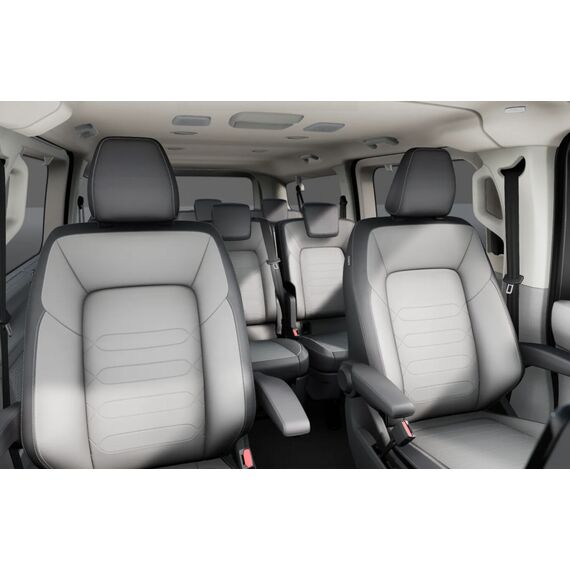 10 Lautsprecher, 12V-Steckdose an D-Säule rechts, 12V-Steckdose in der Mittelkonsole, 2 Verzurrösen, 2. Reihe mit 3 Einzelsitzen, 3. Reihe mit 3er-Sitzbank, Rückenlehne klappbar, Airbag Fahrer-/Beifahrerseite, Beifahrerairbag abschaltbar, Anhängerkupplung, elektrisch anklappbar, Armlehnen vorn, Audio-Navigationssystem mit Touchscreen-Farbdisplay 13" inkl. App-Connect Wireless (Apple CarPlay / Android Auto), Außenspiegel elektr. verstell-, heiz- und anklappbar, Einparkhilfe vorn und hinten, Einstiegleisten Schiebetüren Metall, beleuchtet, Elektron. Stabilitäts-Programm (ESP), Fahrassistenz-System: Geschwindigkeits-Regelanlage mit Intelligentem Geschwindigkeits-Assistent, Fahrassistenz-System: Notbrems-Assistent, Fußgänger- und Fahrraderkennung, Ausweichunterstützung und Abbiege-Assistent, Handschuhfach beleuchtet, Kombiinstrument digital, Lenkrad (Kunstleder) mit Multifunktion, LM-Felgen 6,5x17 (Le Mans, schwarz), Notrufsystem eCall, Reifen 215/60 R17, Rückfahrkamera, Schadstoffarm nach Abgasnorm Euro 6e (EU6 EB), Schmutzfänger vorn und hinten, Seitenairbag / Kopfairbag (Curtain-Airbag) vorn und Kopfairbag (Curtain-Airbag) hinten, Sicherheitsinnenspiegel, manuell abblendbar, Sitzbezug / Polsterung: Kunstleder, Sitze vorn mit Lendenwirbelstütze, verstellbar, Sitze vorn verstellbar (6-fach), Sitzheizung vorn, Sonnenschutzrollos an den Seitenfenstern (2. Reihe), Startanlage / Zentralverriegelung Keyless Access ohne Safesicherung, Stoßfänger vorn und hinten in Wagenfarbe, USB-Schnittstellen vorn und hinten, Wegfahrsperre (elektronisch), Heckscheibe heizbar, Karosserie/Aufbau: Bus, Motor 2,0 Ltr. - 110 kW TDI, Schiebetüren Lade-/Fahrgastraum links/rechts inkl. Zuziehhilfe, Antriebsart: Frontantrieb, Getriebe Automatik - (8-Stufen), Klimaanlage Fahrerhaus und Fahrgastraum (3-Zonen mit autom. Regelung) mit Digitales Bedienteil im Fahrgastraum, Zusatzheizung elektrisch, Verglasung hinten abgedunkelt, Fahrassistenz-System: Verkehrszeichenerkennung mit Falschfahrer-Warnfunktion, Fahrassistenz-System: Dynamische Fernlichtregulierung (Dynamic Light Assist), Heckleuchten LED mit exklusiver Lichtsignatur, Matrix-LED-Scheinwerfer (IQ.Light) inkl. Coming- und Leaving-Home, Fahrassistenz-System: Spurhalteassistent (Lane Assist)