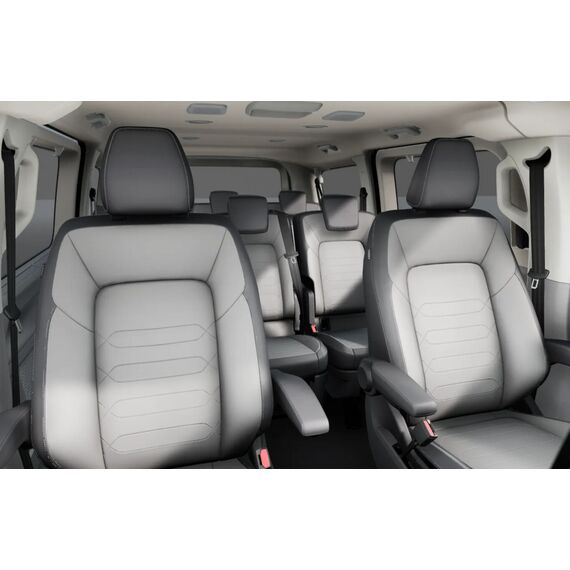 Fenster im Lade-/FG-Raum: - ausstellbar, vorn links, Fenster im Lade-/FG-Raum: - ausstellbar, vorn rechts, 10 Lautsprecher, 12V-Steckdose an D-Säule rechts, 12V-Steckdose in der Mittelkonsole, 2 Verzurrösen, 2. Reihe mit 3 Einzelsitzen, 3. Reihe mit 3er-Sitzbank, Rückenlehne klappbar, Airbag Fahrer-/Beifahrerseite, Beifahrerairbag abschaltbar, Anhängerkupplung elektrisch anklappbar, Armlehnen vorn, Audio-Navigationssystem mit Touchscreen-Farbdisplay 13" inkl. App-Connect Wireless (Apple CarPlay / Android Auto), Außenspiegel elektr. verstell-, heiz- und anklappbar, Einparkhilfe vorn und hinten, Einstiegleisten Schiebetüren Metall, beleuchtet, Elektron. Stabilitäts-Programm (ESP), Fahrassistenz-System: Geschwindigkeits-Regelanlage mit Intelligentem Geschwindigkeits-Assistent, Fahrassistenz-System: Notbrems-Assistent, Fußgänger- und Fahrraderkennung, Ausweichunterstützung und Abbiege-Assistent, Handschuhfach beleuchtet, Kombiinstrument digital, Kraftstofftank 70 l Fassungsvermögen, Lenkrad (Kunstleder) mit Multifunktion, LM-Felgen 6,5x17 (Le Mans, silber), Notrufsystem eCall, Reifen 215/60 R17, Rückfahrkamera, Schadstoffarm nach Abgasnorm Euro 6e (EU6 EB), Schmutzfänger vorn und hinten, Seitenairbag / Kopfairbag (Curtain-Airbag) vorn und Kopfairbag (Curtain-Airbag) hinten, Sicherheitsinnenspiegel, manuell abblendbar, Sitzbezug / Polsterung: Kunstleder, Sitze vorn mit Lendenwirbelstütze, verstellbar, Sitze vorn verstellbar (6-fach), Sitzheizung vorn, Sonnenschutzrollos an den Seitenfenstern (2. Reihe), Startanlage / Zentralverriegelung Keyless Access ohne Safesicherung, Stoßfänger vorn und hinten in Wagenfarbe, USB-Schnittstellen vorn und hinten, Wegfahrsperre (elektronisch), Heckscheibe heizbar, Karosserie/Aufbau: Bus, Motor 2,0 Ltr. - 110 kW TDI, Schiebetüren Lade-/Fahrgastraum links/rechts inkl. Zuziehhilfe, Antriebsart: Frontantrieb, Getriebe 6-Gang, Klimaanlage Fahrerhaus und Fahrgastraum (3-Zonen mit autom. Regelung) mit Digitales Bedienteil im Fahrgastraum, Zusatzheizung elektrisch, Verglasung hinten abgedunkelt, Fahrassistenz-System: Verkehrszeichenerkennung mit Falschfahrer-Warnfunktion, Fahrassistenz-System: Dynamische Fernlichtregulierung (Dynamic Light Assist), Heckleuchten LED mit exklusiver Lichtsignatur, Matrix-LED-Scheinwerfer (IQ.Light) inkl. Coming- und Leaving-Home, Fahrassistenz-System: Spurhalteassistent (Lane Assist)