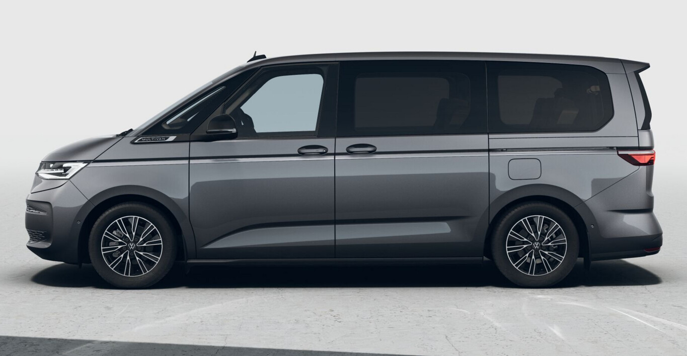 Audio-Navigationssystem Discover Pro (Touchscreen-Farbdisplay 10", inkl. Streaming & Internet), Fahrassistenz-Paket Basic (Service-System: Intelligente Fahrzeugvernetzung (Car2X) / Fahrassistenz-System: Autom. Distanzregelung (ACC inkl. Stop&Go-Funktion) / Fahrassistenz-System: Spurwechselassistent (Side Assist) mit Auspark-Assistent und Ausstiegswarnung), Multifunktionstisch verschiebbar, Schließ-/Startsystem Keyless Advanced mit Safesicherung, Verglasung hinten abgedunkelt (65 %), Schmutzfänger vorn und hinten, Handschuhfach abschließbar, Heckklappe mit Soft-Close-Funktion, LM-Felgen 6,5x17 (Dundrod, schwarz), Reifen 235/55 R17, Schadstoffarm nach Abgasnorm Euro 6e (EU6 EA), Mobile Online Dienste Vorbereitung We Connect und We Connect Plus (Vorbereitung Onlinedienste), Sitz-Paket: 7-Sitzer, 2-2-3 (2 Einzelsitze, 2 Einzelsitze, 3 Einzelsitze) (Sitze im Lade-/FG-Raum: 1.Reihe, 2 Einzelsitze / Sitze im Lade-/FG-Raum: 2.Reihe, 3 Einzelsitze), Außenspiegel schwarz lackiert, Blinkleuchten LED in Außenspiegel integriert, Bodenbelag im Lade-/Fahrgastraum Teppich, Chromleisten seitlich und Heckklappe unten, Digital Cockpit Pro (Instrumentenanzeige Digital), Fahrassistenz-System: Ausweich-Assistent und Abbiege-Assistent, Fenster im Lade-/FG-Raum: - feststehend, vorn links, Fenster im Lade-/FG-Raum: - feststehend, vorn rechts, Frontscheibe Verbundglas getönt, Funkschlüssel (2), Handschuhfach beleuchtet, Innenausstattung: Dekoreinlagen Dark Woodgrain Optic, Innenleuchtenkonzept im Fahrgastraum, Innenspiegel mit Abblendautomatik, Intelligent Speed Assist inkl. Geschwindigkeitsbegrenzer, Karosserie/Aufbau: Bus, Ladekantenabdeckung in Kunststoff, mit Edelstahleinsatz, Laderaumunterteilung und Gepäcksicherungsnetz, Lautsprecher (8), Lichtleiste zwischen Scheinwerfer, Mobile Online Dienste App-Connect inkl. App-Connect Wireless (Apple CarPlay, Android Auto), Motor 2,0 Ltr. - 110 kW TDI, Pedale Edelstahl, Radioempfang digital (DAB+), Radstand 3124 mm, Schlechtwetter-Licht, Schubladen unter Rücksitze außen und 2 Abfallbehälter, Sitzbezug / Polsterung: ArtVelours / Kunstleder, Sitze im Fahrerhaus: 4 Armlehnen, Lendenwirbelstützen elektr. und Klapptische, Sitze im Fahrerhaus: Beifahrersitz höhenverstellbar, Sitze im Fahrerhaus: Fahrersitz höhenverstellbar, Sitze im Lade-/FG-Raum: 1.Reihe mit 2 Armlehnen innen (abnehmbar), Sitze im Lade-/FG-Raum: 2.Reihe mit Vorbereitung für 2 Armlehnen innen, Sonnenblenden mit Spiegel (beleuchtet), Umfeldbeleuchtung seitlich mit Projektionsfunktion, Umfeldleuchte in Heckklappe und Ambiente-Beleuchtung (30 Farben), Warnanlage für Sicherheitsgurte vorn und hinten, Mobiltelefon Schnittstelle Bluetooth, Multimedia-Schnittstelle 2 x USB vorn und 4 x USB-Ladeanschluß Fahrgastraum (Typ C), Sprachsteuerungs-System, Anti-Blockier-System (ABS), Fahrassistenz-System: Bremsassistent (HBA), Antriebsart: Frontantrieb, Elektron. Stabilitäts-Programm (ESP) mit Bremskraftverstärker elektro-mechanisch, Wegfahrsperre (elektronisch), Getriebe 7-Gang - Doppelkupplungsgetriebe DSG, Klimaanlage Climatronic 3-Zonen inkl. Fondbedienung, Zusatzheizung, Airbag Fahrer-/Beifahrerseite, Beifahrerairbag abschaltbar, Fensterheber elektrisch vorn, Seitenairbag / Kopfairbag / Center-Airbag vorn und Kopfairbag hinten, Sitze im Fahrerhaus: Fahrer- und Beifahrersitz heizbar, Schiebetür Lade-/Fahrgastraum links elektr. betätigt, Schiebetür Lade-/Fahrgastraum rechts elektr. betätigt, Fahrassistenz-System: Verkehrszeichenerkennung, Rückfahrkamera, Notrufsystem, Lenkrad (Leder) mit Multifunktion und Schaltfunktion, Servolenkung elektro-mechanisch, geschwindigkeitsabhängig, Fahrassistenz-System: Dynamische Fernlichtregulierung (Dynamic Light Assist), Matrix-LED-Scheinwerfer (IQ.Light), Regensensor, Tagfahrlicht und Assistenzfahrlicht mit Coming Home / Leaving Home, Fahrassistenz-System: Parklenkassistent (Park Assist) inkl. Einparkhilfe vorn und hinten, Fahrassistenz-System: Ablenkungs- und Müdigkeitserkennung, Fahrassistenz-System: Spurhalteassistent (Lane Assist), Reifenkontroll-Anzeige, Diebstahl-Warnanlage + Innenraumüberwachung / Abschleppschutz + Back-up-Horn, Rußpartikelfilter