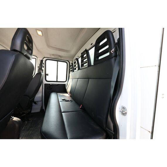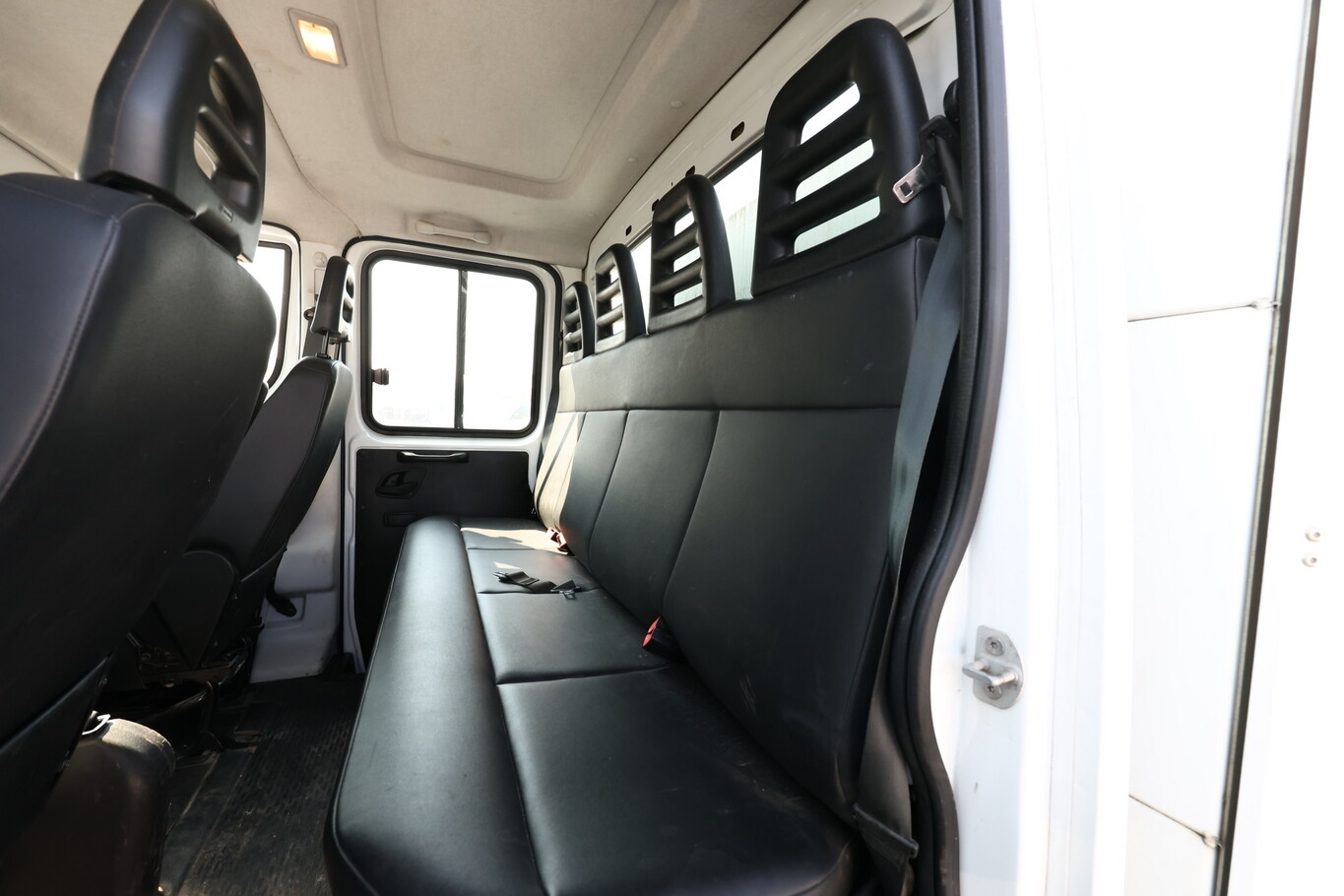 Klimaautomatik (Innenraumfilter: Pollenfilter / Kältekompressor 170 ccm), Audiosystem: Radio mit CD-Player MP3-fähig, USB und Freisprecheinrichtung Bluetooth, Sitze im Fahrerhaus: Fahrersitz Komfort (hydraulisch), Geschwindigkeits-Regelanlage (Tempomat), Federung Hinterachse: Trapez mit Hilfsfeder, Reserverad in Fahrbereifung, Reserveradhalter zwischen Bodenlängsträger, Fahrzeugschlüssel mit Fernbedienung, Ablagefach auf Armaturentafel mit USB-Anschluss, Sitzbezug / Polsterung: Kunstleder, Aufbauhersteller-Interface, Anhängersteckdose 13-polig, Sitze im Fahrerhaus: Beifahrereinzelsitz, 3-fach verstellbar, Reifen 195/75 R16, Ausführung: C-Reihe, Federung Vorderachse: Querblattfeder, Generator 180 A, Karosserie/Aufbau: Pritsche Doppelkabine, Kombiinstrument mit Pixel-Matrix-Display, Kraftstofftank: 70 Ltr., Leuchtweitenregelung, Motor 2,3 Ltr. - 100 kW Diesel, Radstand 4100 mm, Wartungsanzeige, Zul. Gesamtgewicht 3,50 t, Anti-Blockier-System (ABS), Bremsassistent, Antriebs-Schlupfregelung (ASR), Antriebsart: Heckantrieb, Elektron. Stabilitäts-Programm (ESP), Wegfahrsperre, Getriebe 6-Gang, Airbag Fahrerseite, Fensterheber elektrisch, Zentralverriegelung mit Fernbedienung, Frontscheibe und Seitenscheiben getönt, Servolenkung, Außenspiegel elektr. verstell- und heizbar, Tagfahrlicht, Rußpartikelfilter, Start/Stop-Anlage Motor